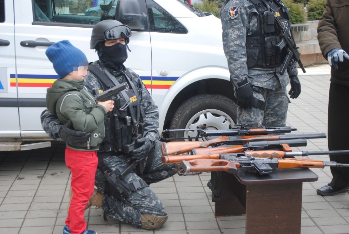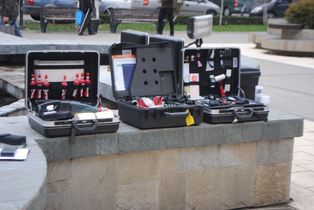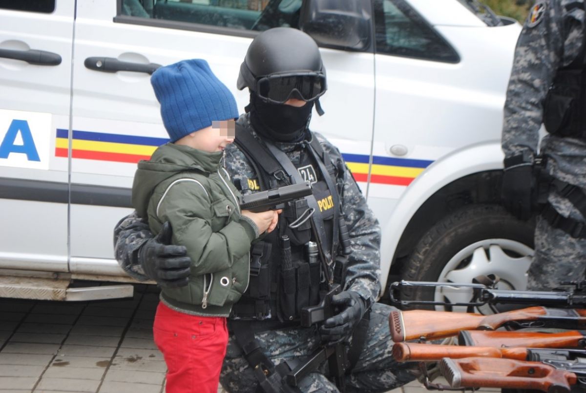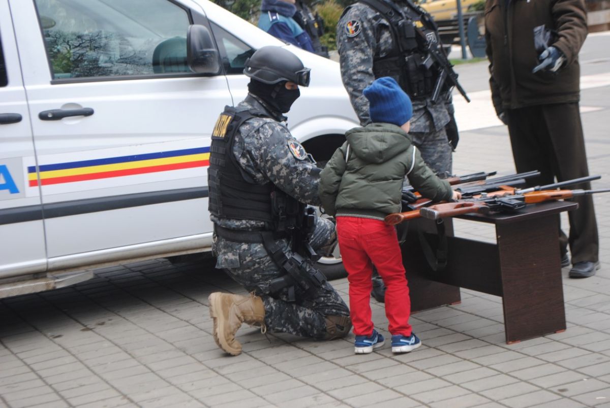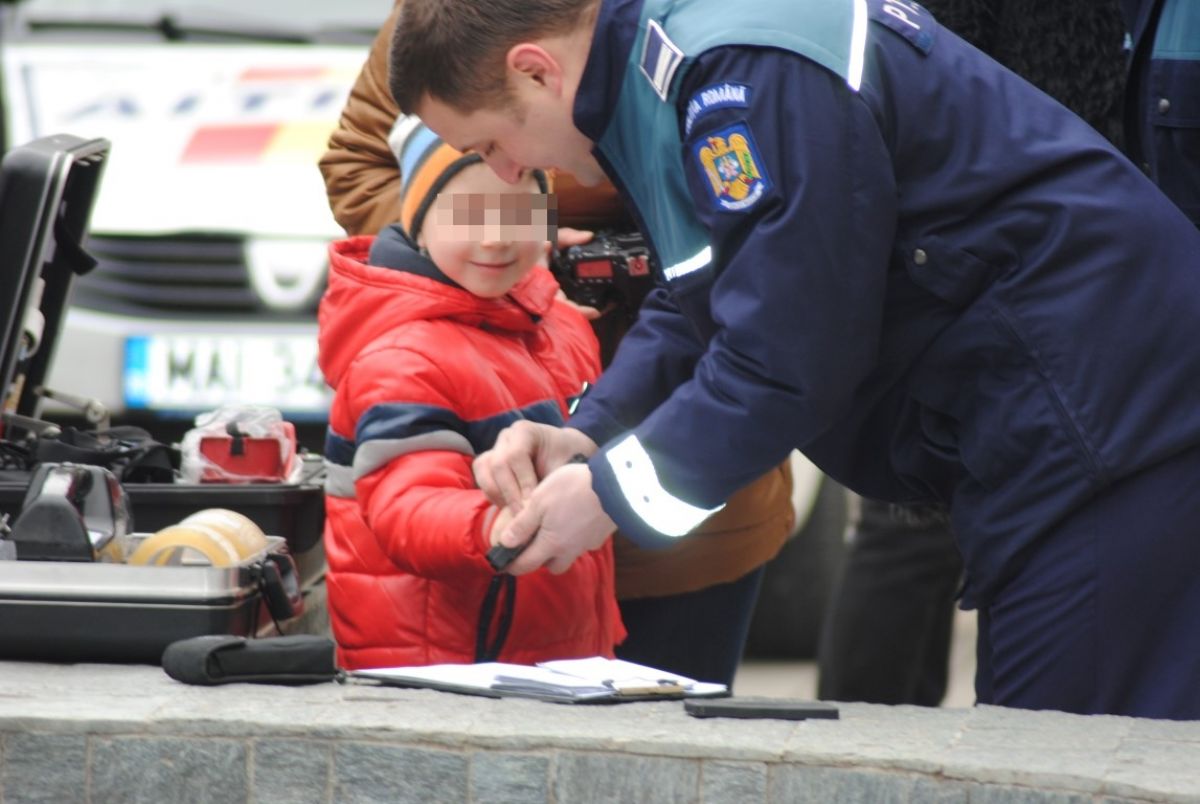Oamenii legii au adus cu ei aparatura folosită în misiunile de investigații și au expus în fața instituției de cultură câteva arme. Nu în ultimul rând, polițiștii au venit împreună cu un camarad de nădejde și anume un câine lup îmbrăcat în uniformă. Prezența echipajelor pe Pietonal a stârnit curiozitatea trecătorilor care s-au oprit din drum pentru a face câteva fotografii. De altfel, cei mai fascinați au fost câțiva copii care au avut ocazia să urce în mașina Poliției Rutiere, să atingă ustensilele criminaliștilor, să-și lase amprentele și să stea alături de mascați.