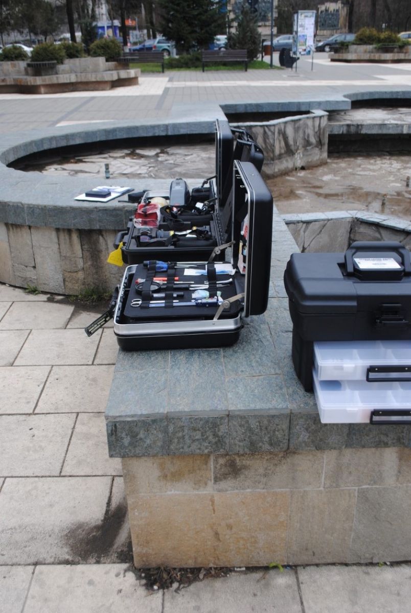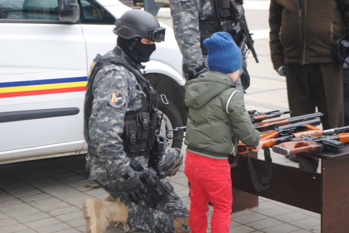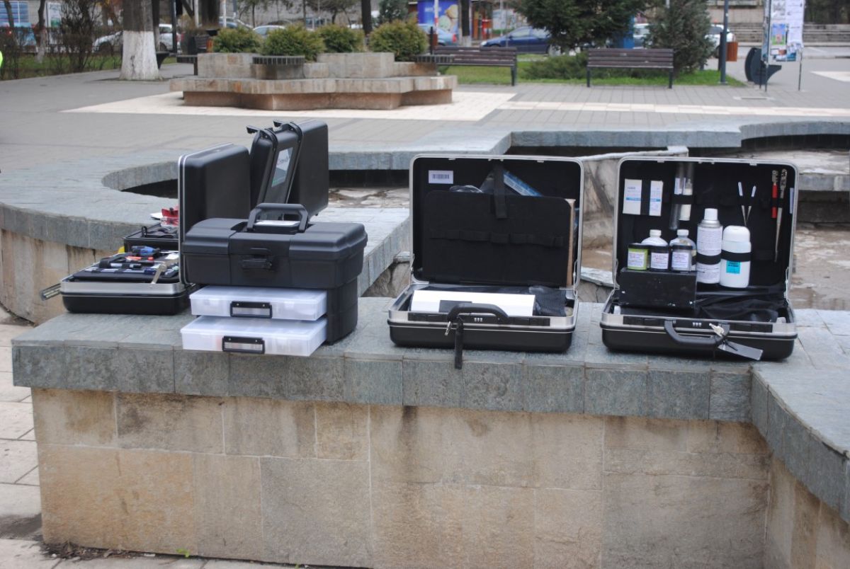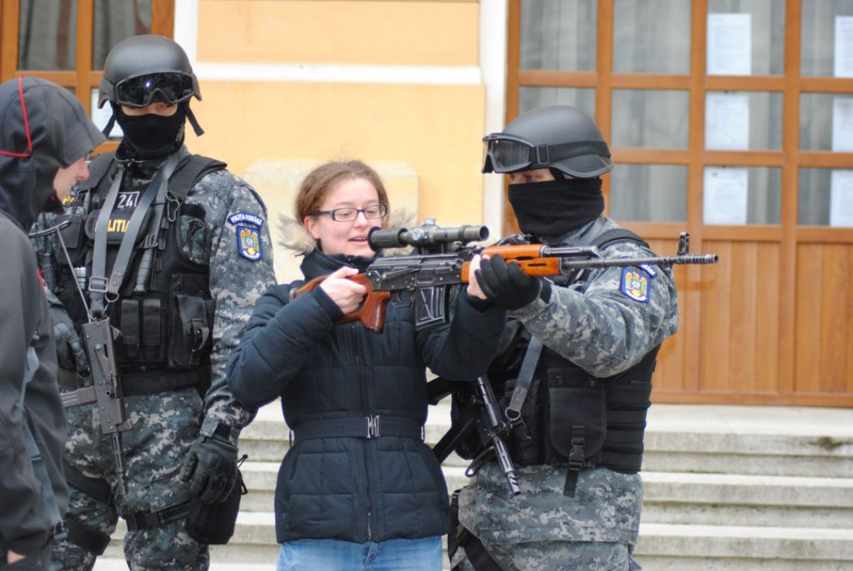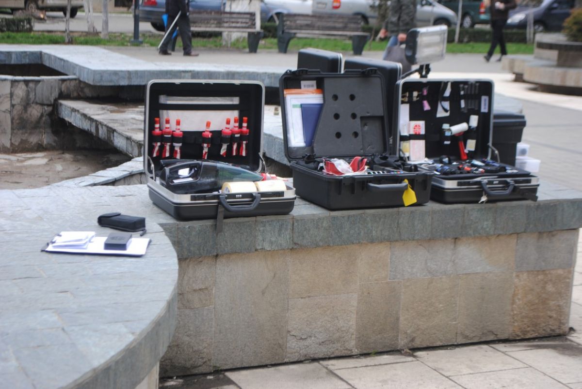 Oamenii legii au adus cu ei aparatura folosită în misiunile de investigații și au expus în fața instituției de cultură câteva arme. Nu în ultimul rând, polițiștii au venit împreună cu un camarad de nădejde și anume un câine lup îmbrăcat în uniformă. Prezența echipajelor pe Pietonal a stârnit curiozitatea trecătorilor care s-au oprit din drum pentru a face câteva fotografii. De altfel, cei mai fascinați au fost câțiva copii care au avut ocazia să urce în mașina Poliției Rutiere, să atingă ustensilele criminaliștilor, să-și lase amprentele și să stea alături de mascați.