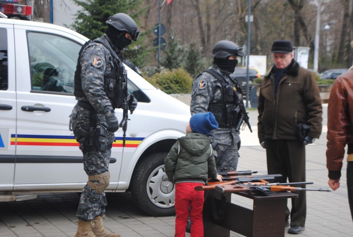 Mai multe echipaje de polițiști criminaliști, rutieri și mascați au venit în dimineața zilei de 25 martie 2016, la ora 10.30, în fața Muzeului Județean, de pe Pietonalul Unirii, pentru a marca alături de cetățeni, Ziua Poliției Române.