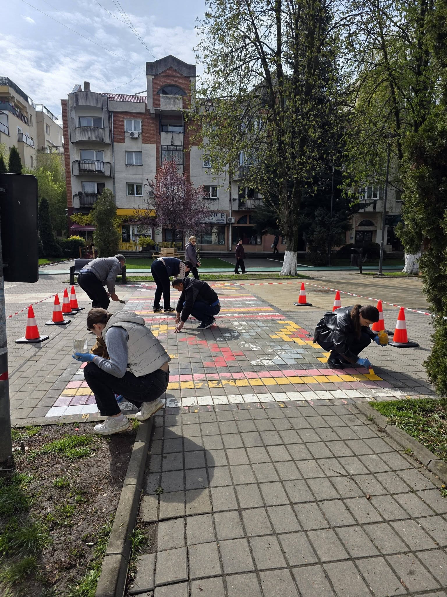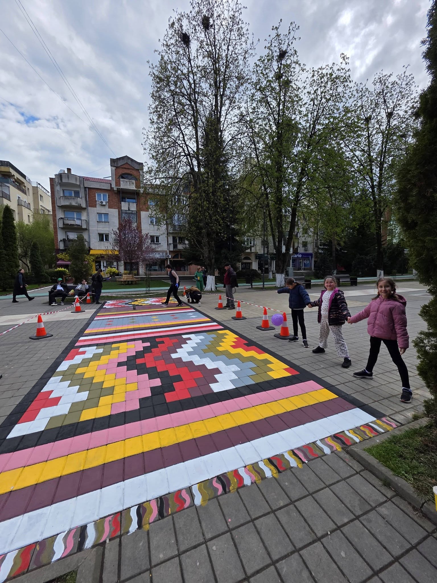 Covorul pictat pe Pietonalul Unirii nu este doar o lucrare artistică, ci și un simbol al colaborării și al implicării comunității locale.