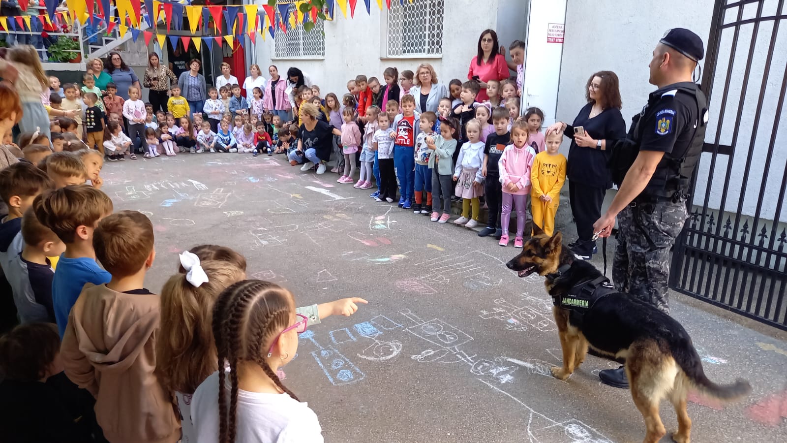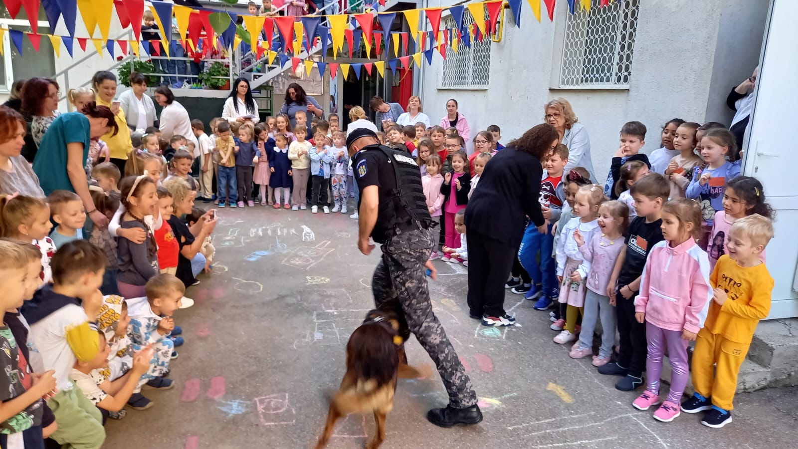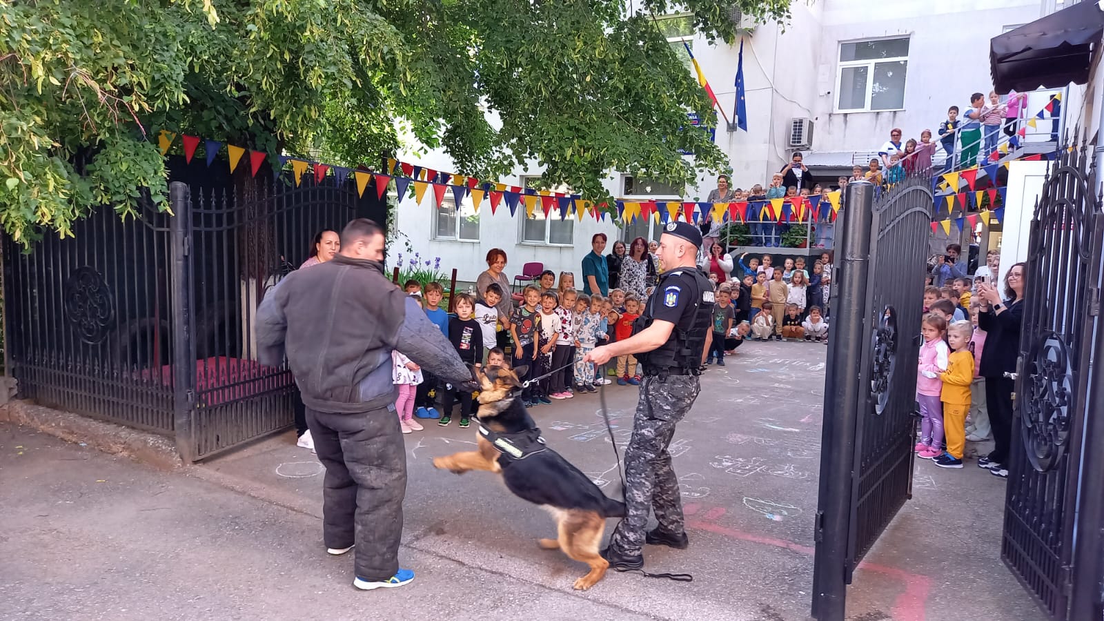 Dacă Pih a atras atenția copiilor prin exercițiul de disciplină canină și giumbușlucurile făcute, Ciua a executat la perfecție o intervenție pentru imobilizarea unui răufăcător, demonstrând scopul pentru care este pregătită în specializarea patrulare și intervenție.