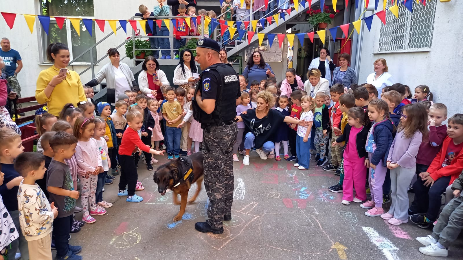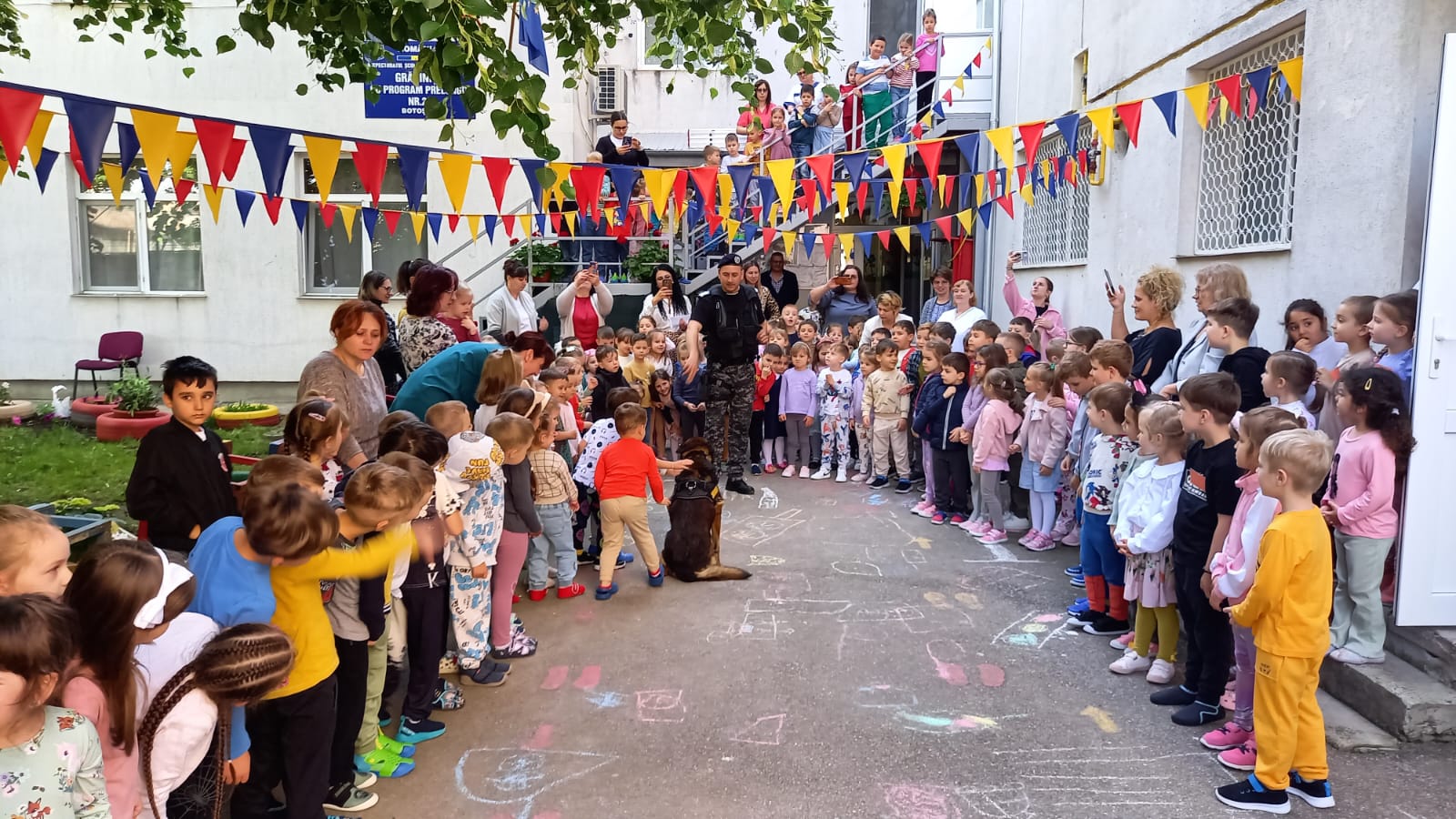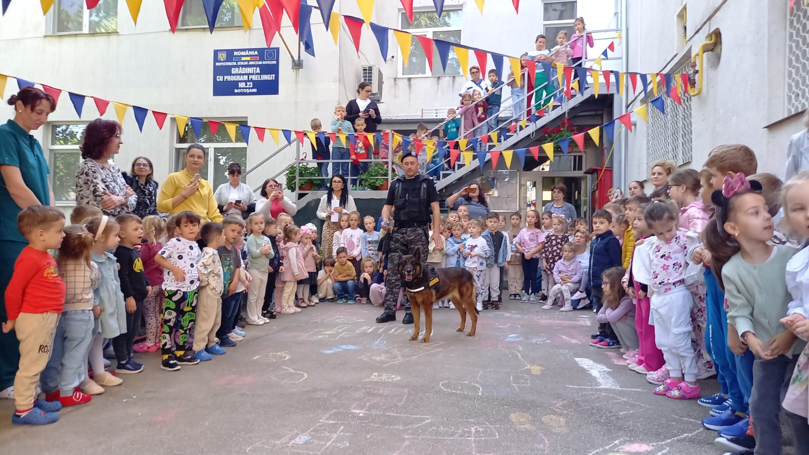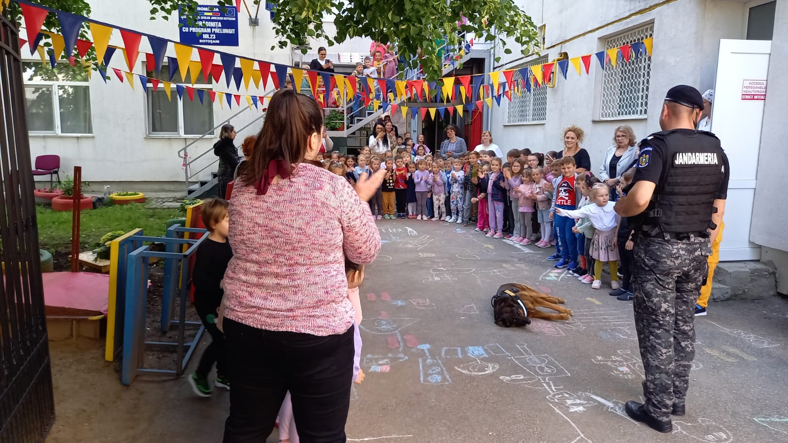 Activitatea s-a terminat cu fotografii de grup, de la care nu a lipsit Pih, cel mai cunoscut și admirat câine de serviciu al jandarmilor botoșăneni.