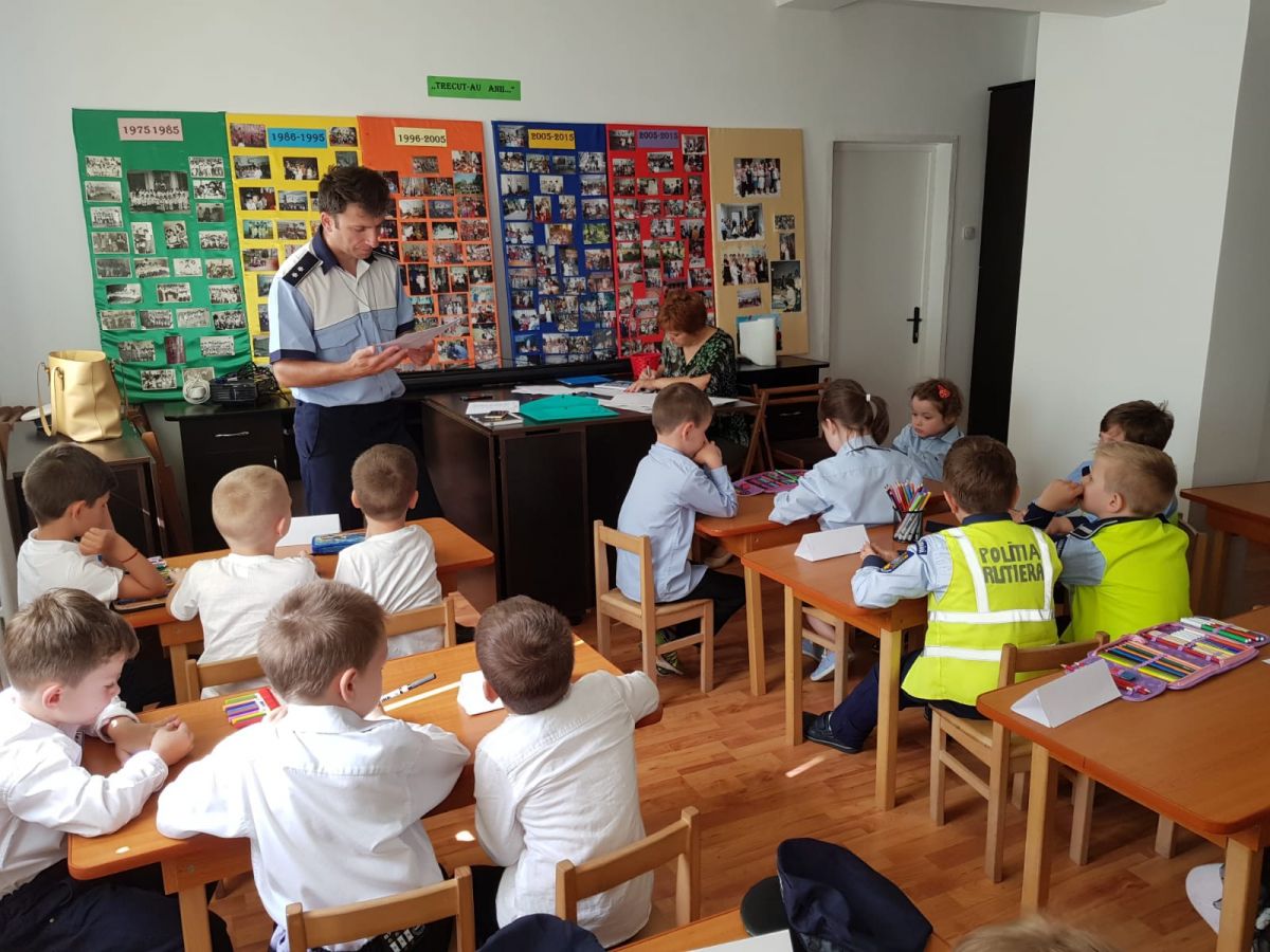 Prima probă a concursului a fost una teoretică, în care micuţii au avut de recunoscut indicatoare şi marcaje rutiere şi de identificat modalităţile în care pot folosi în siguranţă drumurile publice.