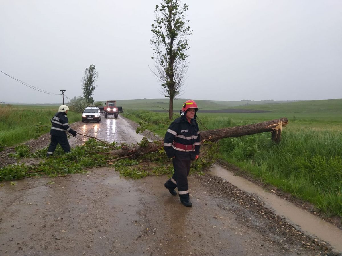 Update: Pompierii botoșăneni au intervenit și pentru degajarea unor copaci căzuți pe șosea, în localitatea Știubieni.