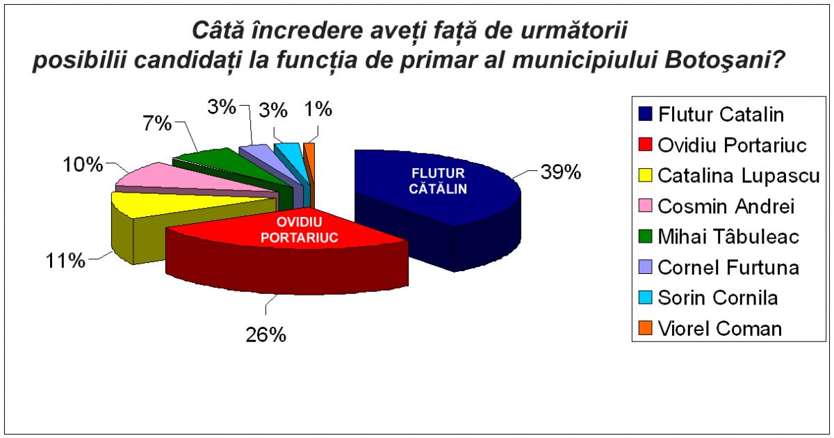 La rândul său, PNL a comandat un sondaj de opinie la nivelul municipiului Botoşani, însă cu scopul de a-l folosi strict ca instrument de lucru, fără a publica iniţial datele obţinute. Pentru eliminarea oricărui tip de speculaţie pe baza rezultatelor obţinute, conducerea organizaţiei PNL a decis însă, în cele din urmă, publicarea parţială acestuia. Astfel se poate observa cu uşurinţă că, în ceea ce priveşte încrederea, Cătălin Flutur, candidatul PNL la funcţia de primar al municipiului Botoşani, conduce detaşat, cu un procent de 39%, urmat la mare distanţă de Ovidiu Portariuc, candidatul PSD, cu un procent de 26%. Şi în privinţa intenţiilor de vot, clasamentul este condus tot de candidatul Catălin Flutur, de la PNL, cu un procent de 39,60%, fiind secondat, de asemeni la mare distanţă, de Ovidiu Portariuc, candidatul PSD, cu un procent de 24,80%.