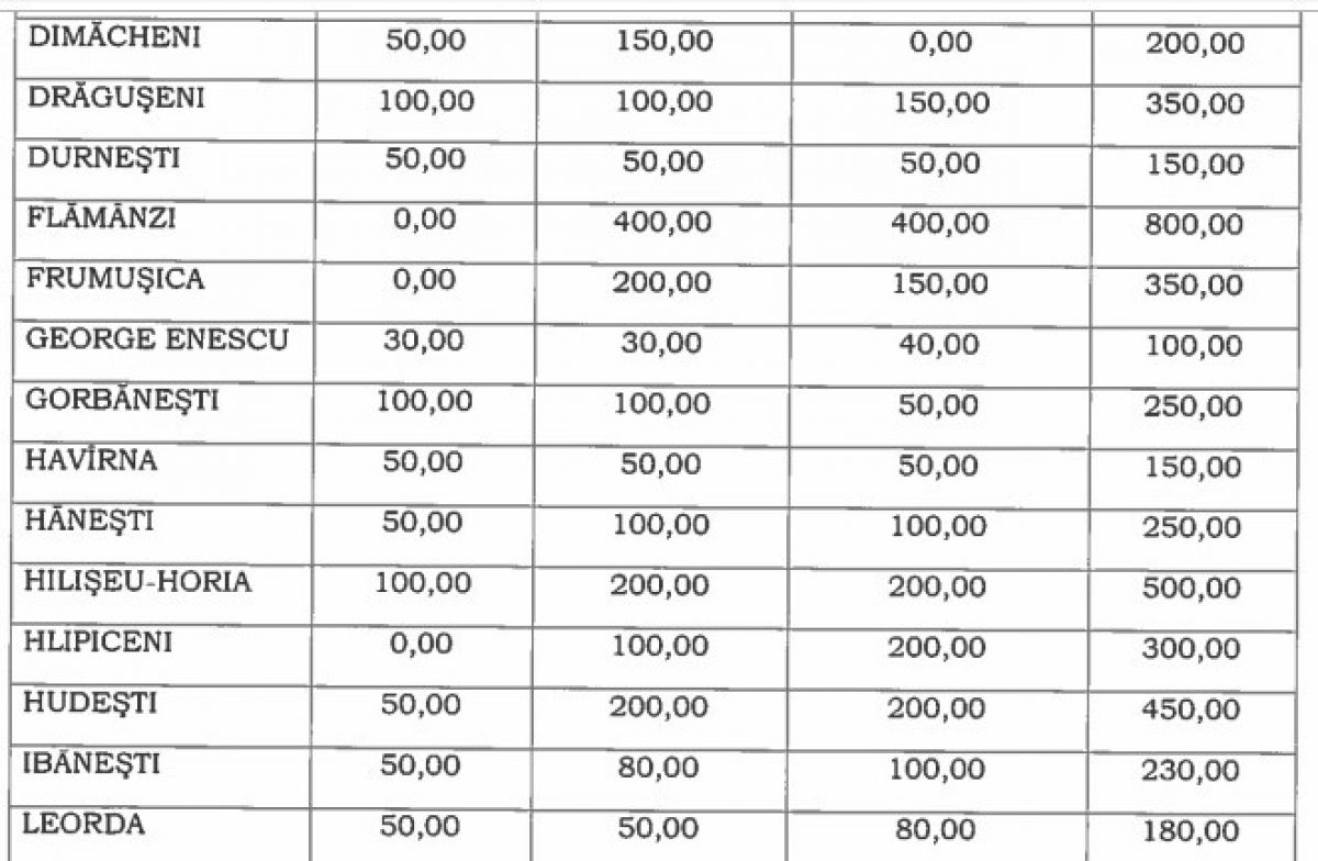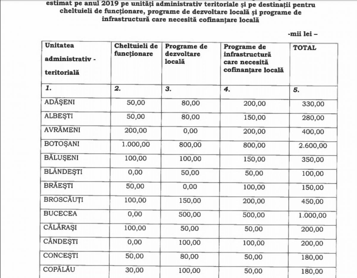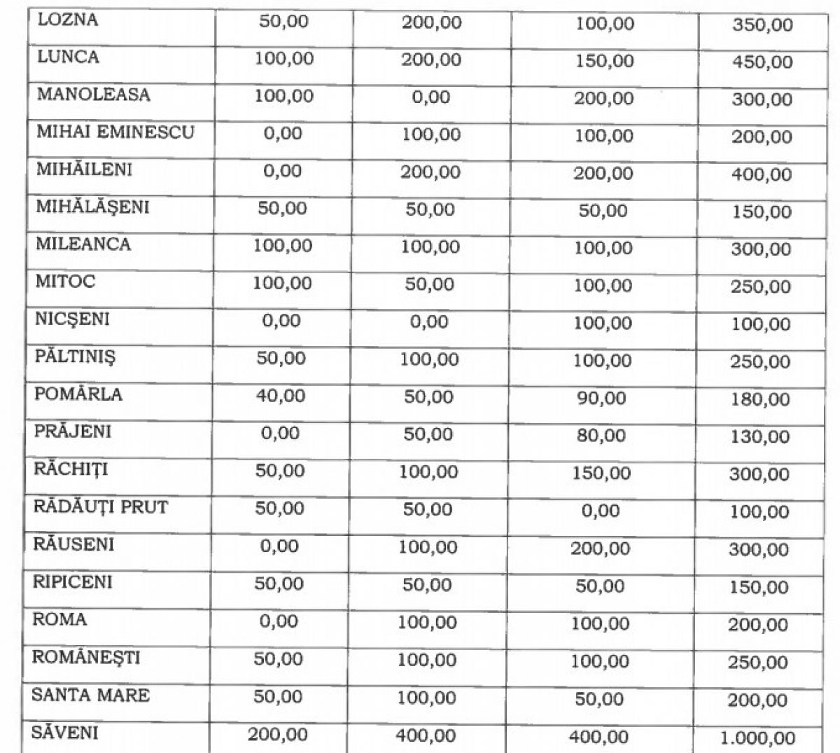 Astfel, Primăriei Botoșani i-a fost repartizată o sumă de 2,6 milioane de lei noi, în timp ce unității administrativ teritoriale Dorohoi i-au fost alocate 2.522.000 de lei.
