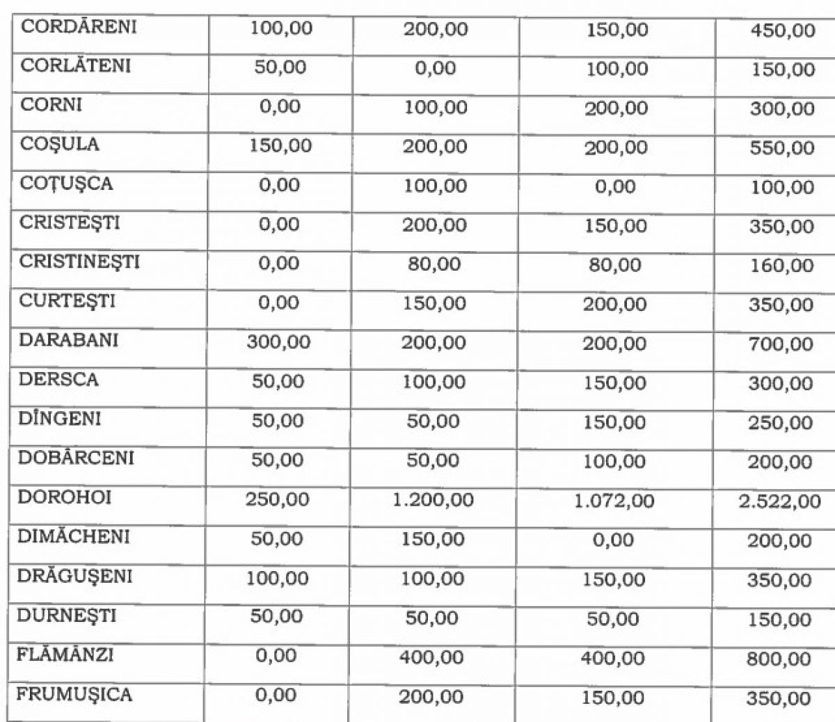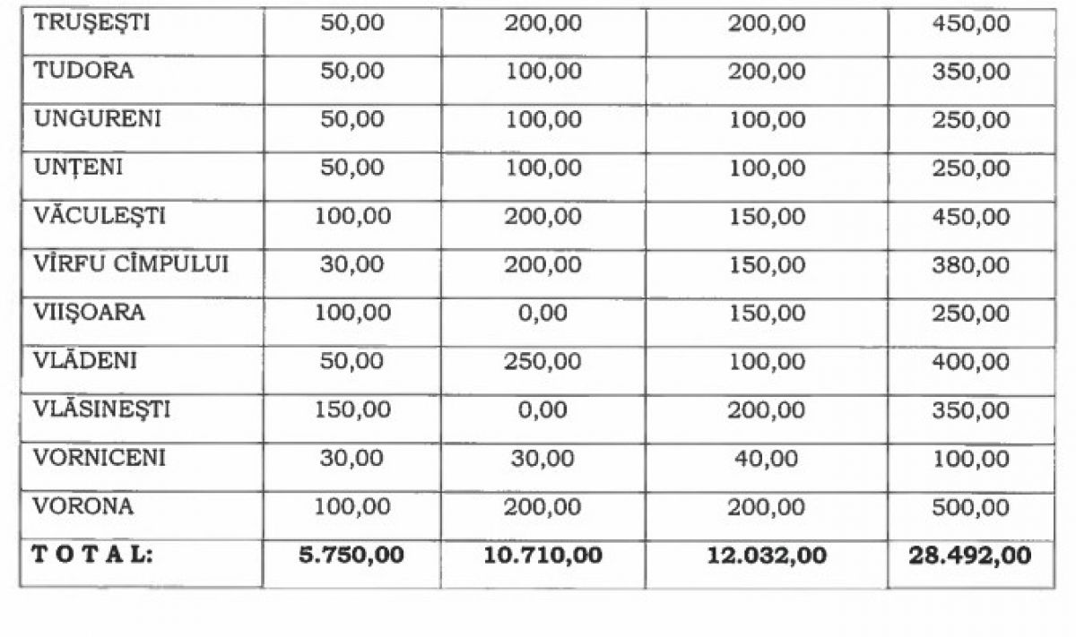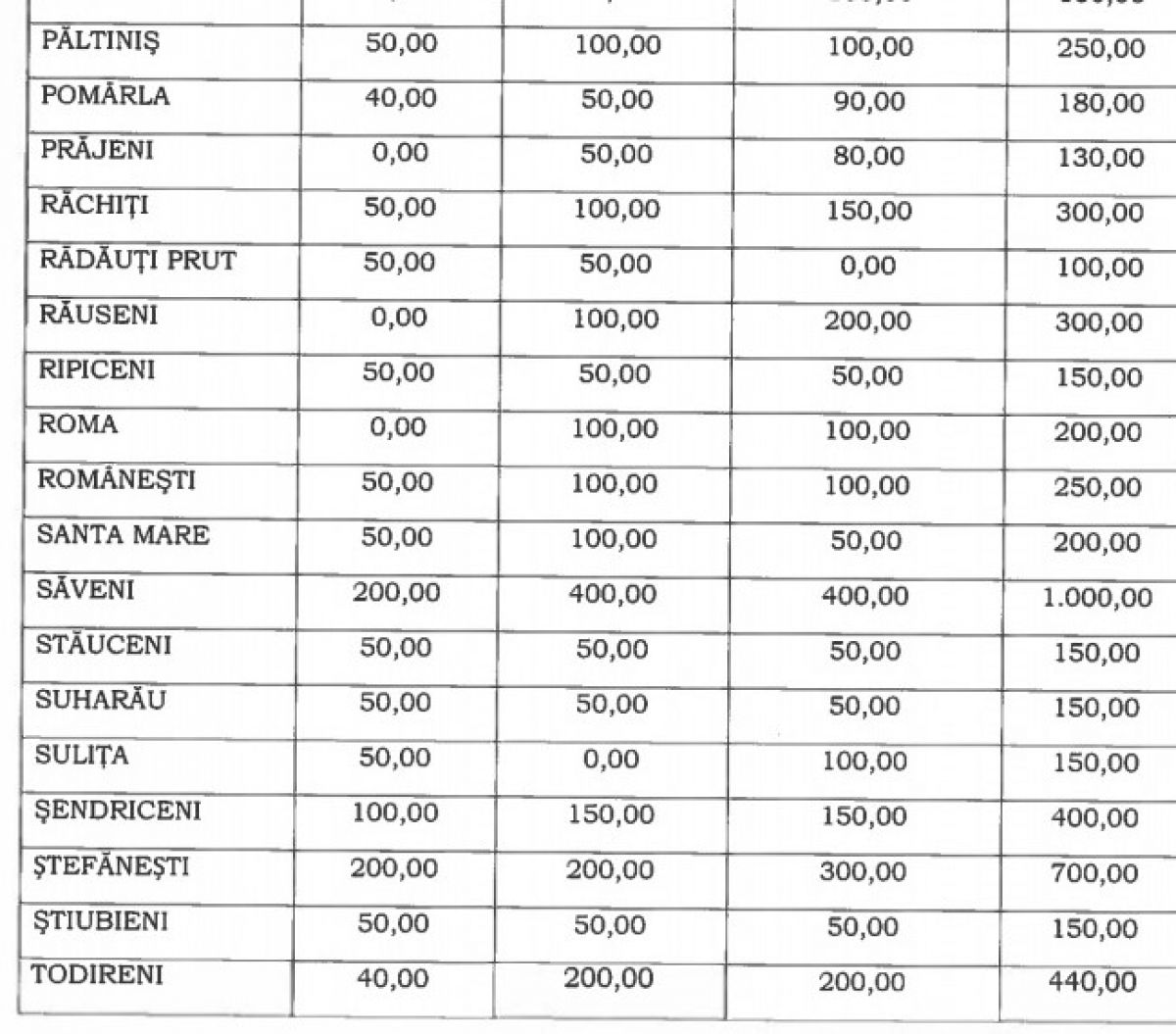 Astfel, Primăriei Botoșani i-a fost repartizată o sumă de 2,6 milioane de lei noi, în timp ce unității administrativ teritoriale Dorohoi i-au fost alocate 2.522.000 de lei.
