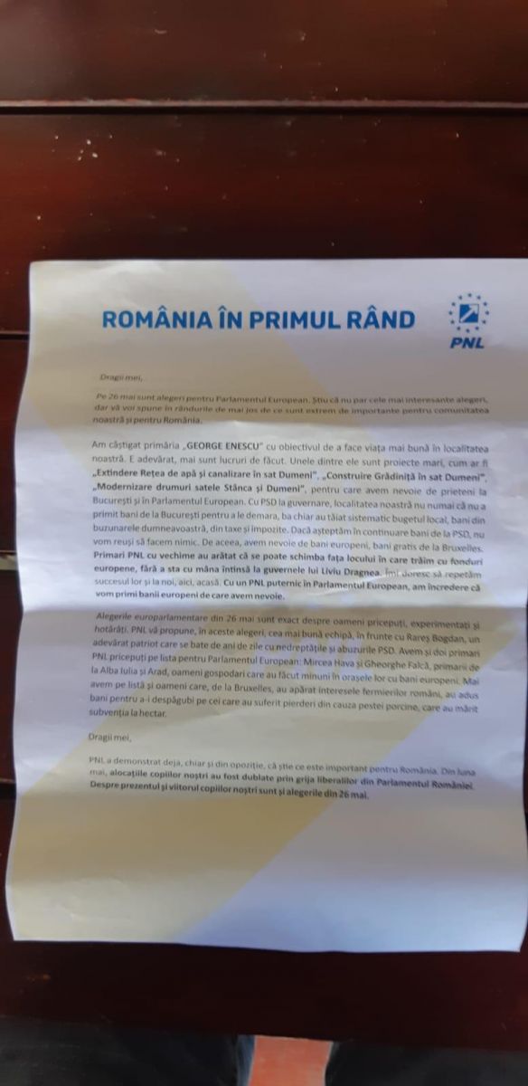 Botoșănenii din municipiul Botoșani și din mai multe zone ale județului au adus la sediul PSD Botoșani mai multe materiale de propagandă electorală prin care sunt promovați candidații PNL pentru Parlamentul European, care nu respectă legislația în domeniul electoral. Toate tipăriturile cu PNL au fost împărțite în perioada campaniei electorale și nu înainte, dovada fiind toate persoanele care le-au primit în mână pe stradă, cât și la cutia poștală, în ultimile zile.
