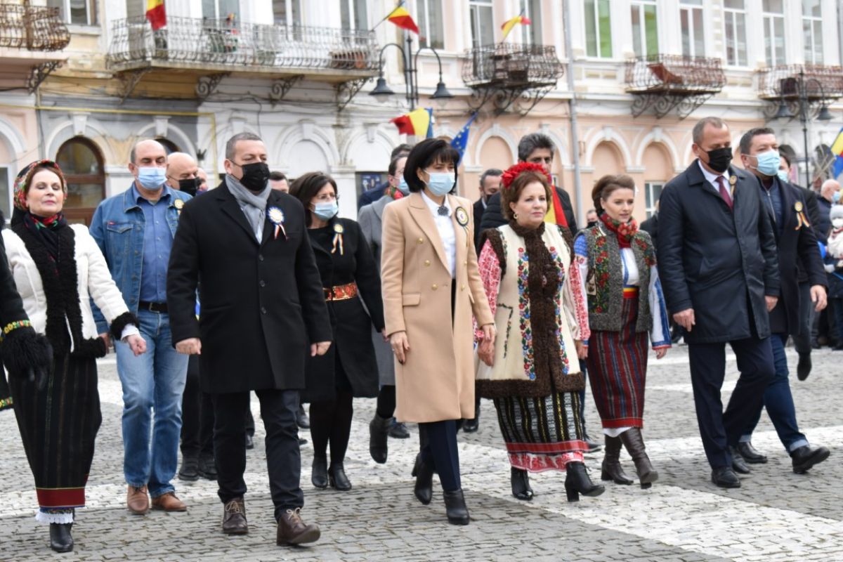 Mihaela Huncă a venit însoțită de viceprimarul Liviu Toma și Doru Gravrilaș, consilier județean, Pro România fiind următoarea formațiune care s-a înscris la depunerea de jerbe de flori.