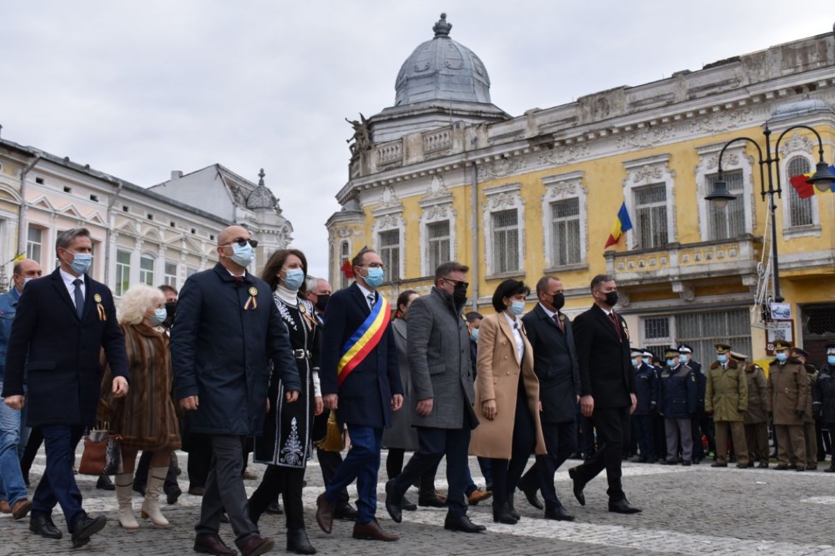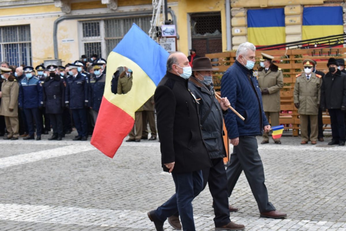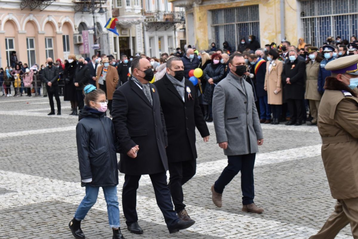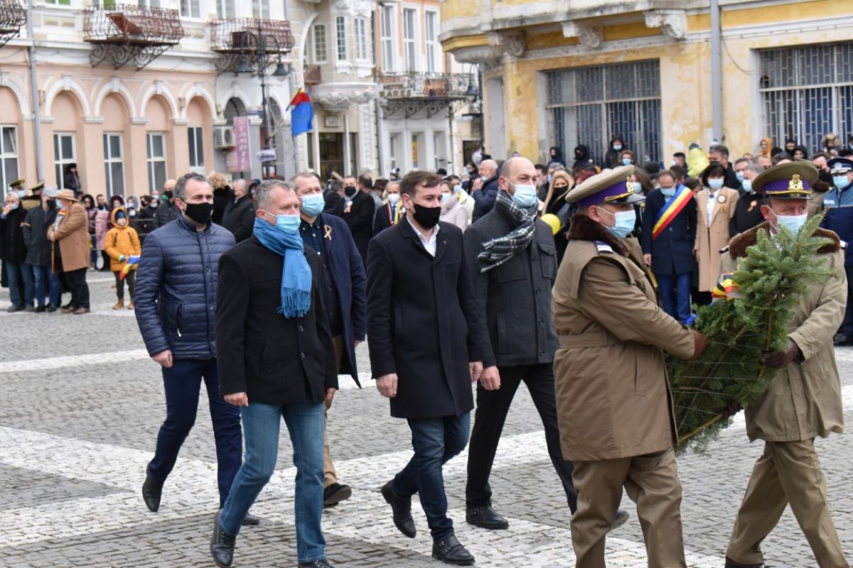 Cu Costel Șoptică în mijloc, flancat de colegul parlamentar Cristian Achiței și colegul prefect, Dan Nechifor, peneliștii au fost vizibili din punct de vedere numeric, fiind înșirați pe mai multe rânduri la depunerea propriei coroane.