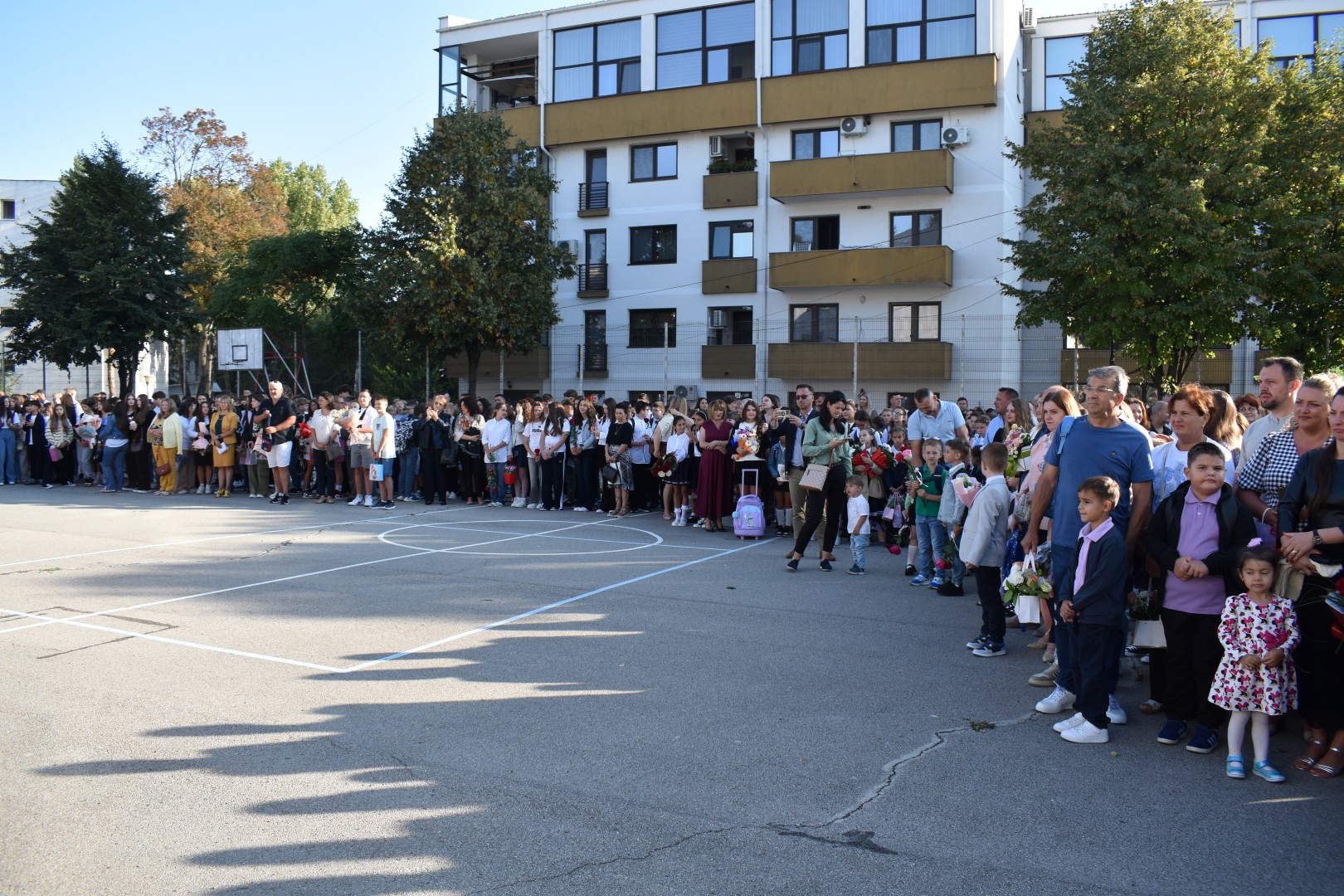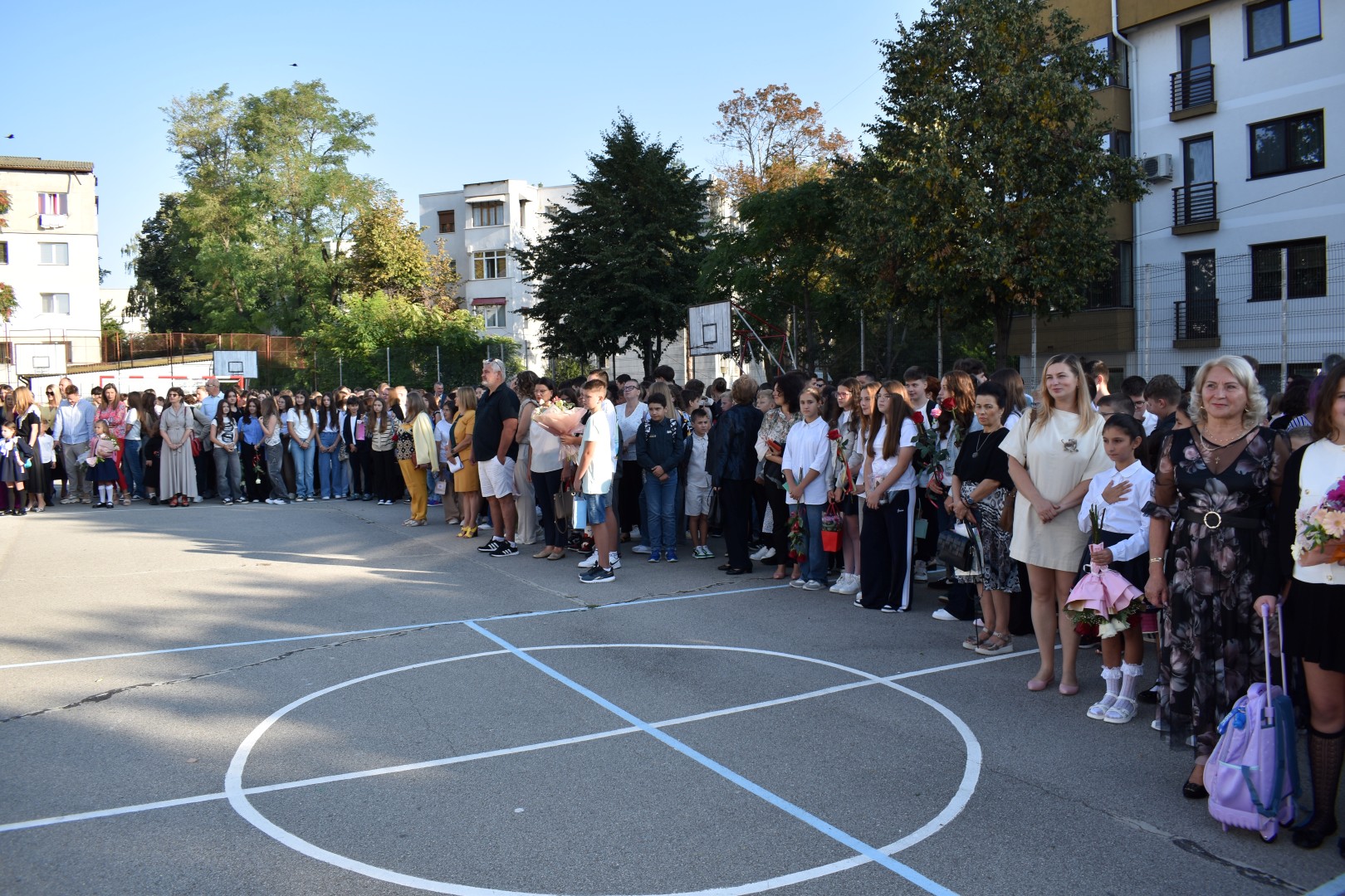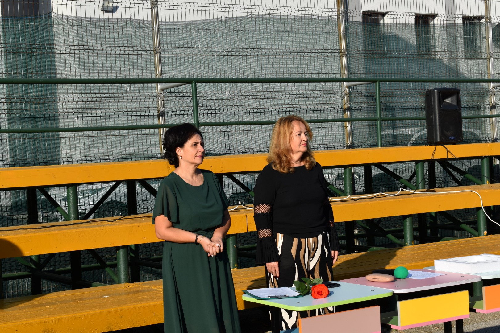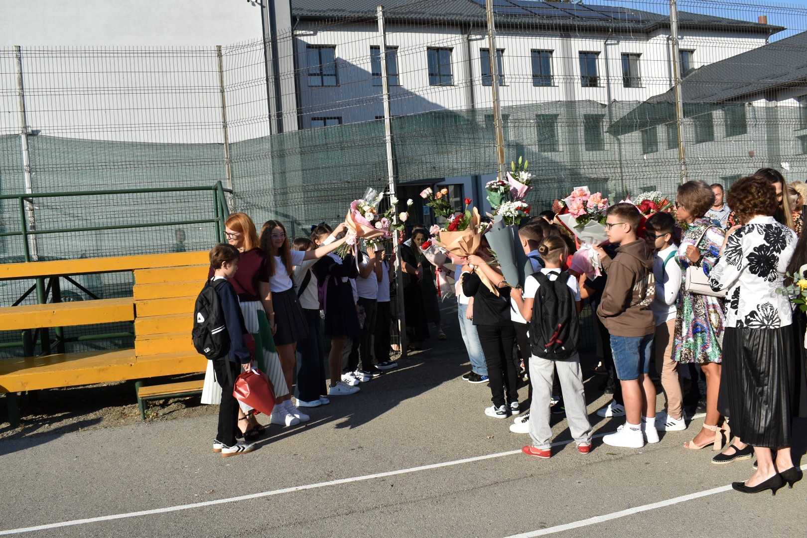 Festivitatea de deschidere a noului an școlar a avut loc pe terenul de sport, acolo unde s-au adunat sute de elevi, părinți și bunici.