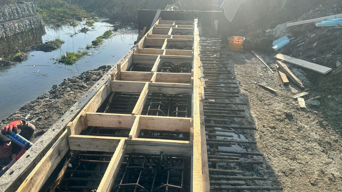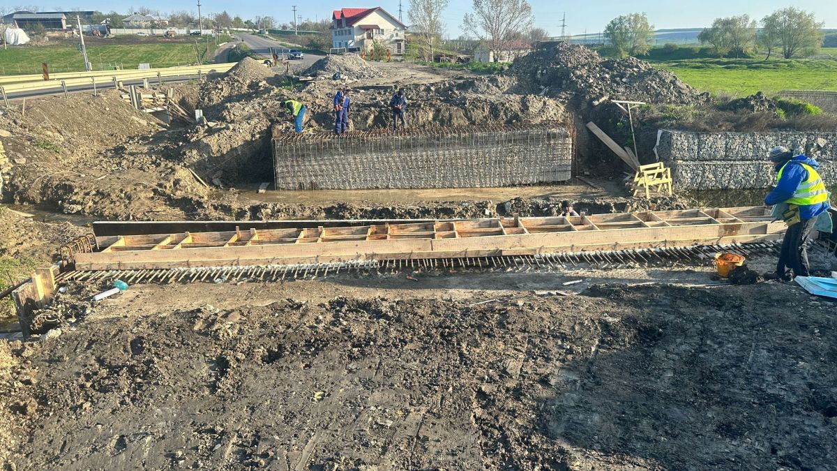 Angajații DRDP efectuează în această dimineață lucrări de armare și cofrare banchetă cuzineți, precum și lucrări de armare și cofrare cămășuire culee.