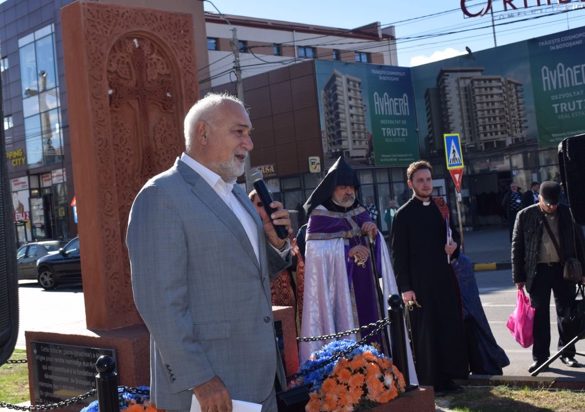 Președintele Uniunii Armenilor din România a ajuns astăzi la Botoșani pentru a participa la slujba de sfințire a crucii de piatră.