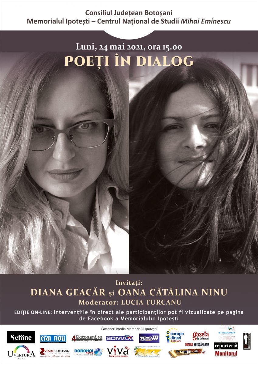 Pe data de 24 mai 2021, la ora 15.00, Memorialul Ipotești – Centrul Național de Studii „Mihai Eminescu” organizează ediția din mai a lecturilor Poeți în dialog.