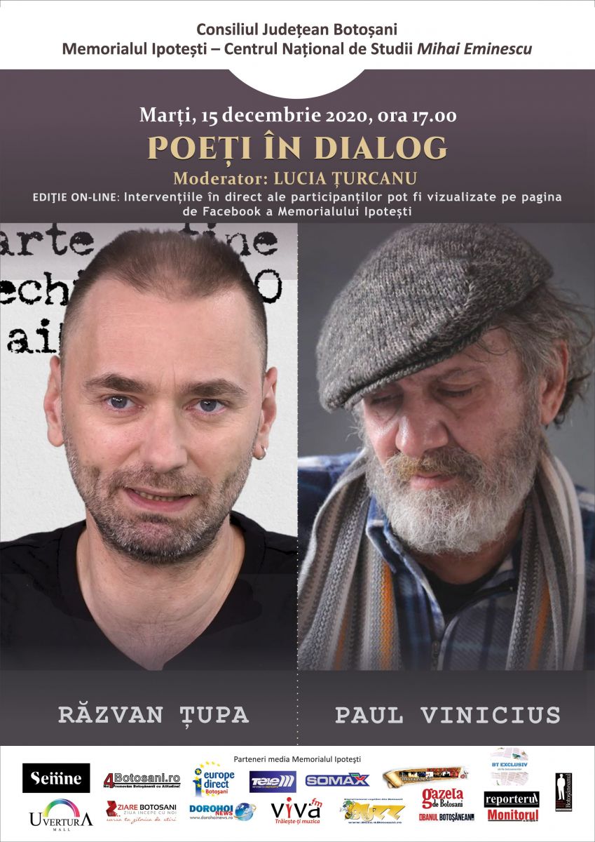 Pe data de 15 decembrie 2020, la ora 17.00, Memorialul Ipotești – Centrul Național de Studii „Mihai Eminescu” organizează o ediție on-line a întâlnirilor Poeți în dialog.