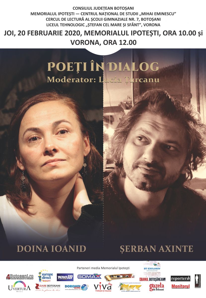 Memorialul Ipotești - Centrul Național de Studii Mihai Eminescu, în parteneriat cu Cercul de lectură „Unde fugim de-acasă?” (Școala Gimnazială nr. 7 din Botoșani) și Liceul Tehnologic „Ștefan cel Mare și Sfânt” din Vorona, continuă seria de lecturi poetice desfășurate sub genericul Poeți în dialog.