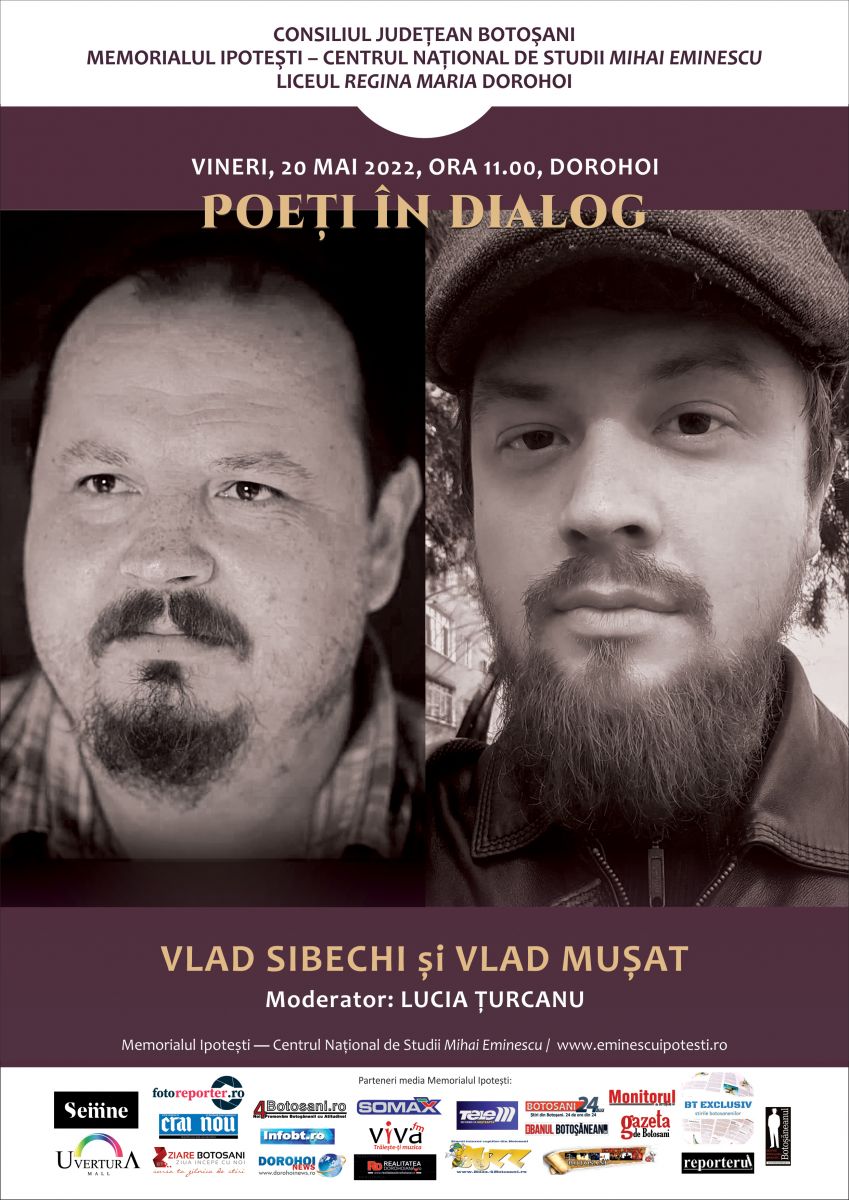 Vineri, 20 mai 2022, la ora 11.00, Memorialul Ipotești – Centrul Național de Studii „Mihai Eminescu”, în parteneriat cu Liceul „Regina Maria” Dorohoi, organizează o nouă ediție a întâlnirilor Poeți în dialog.