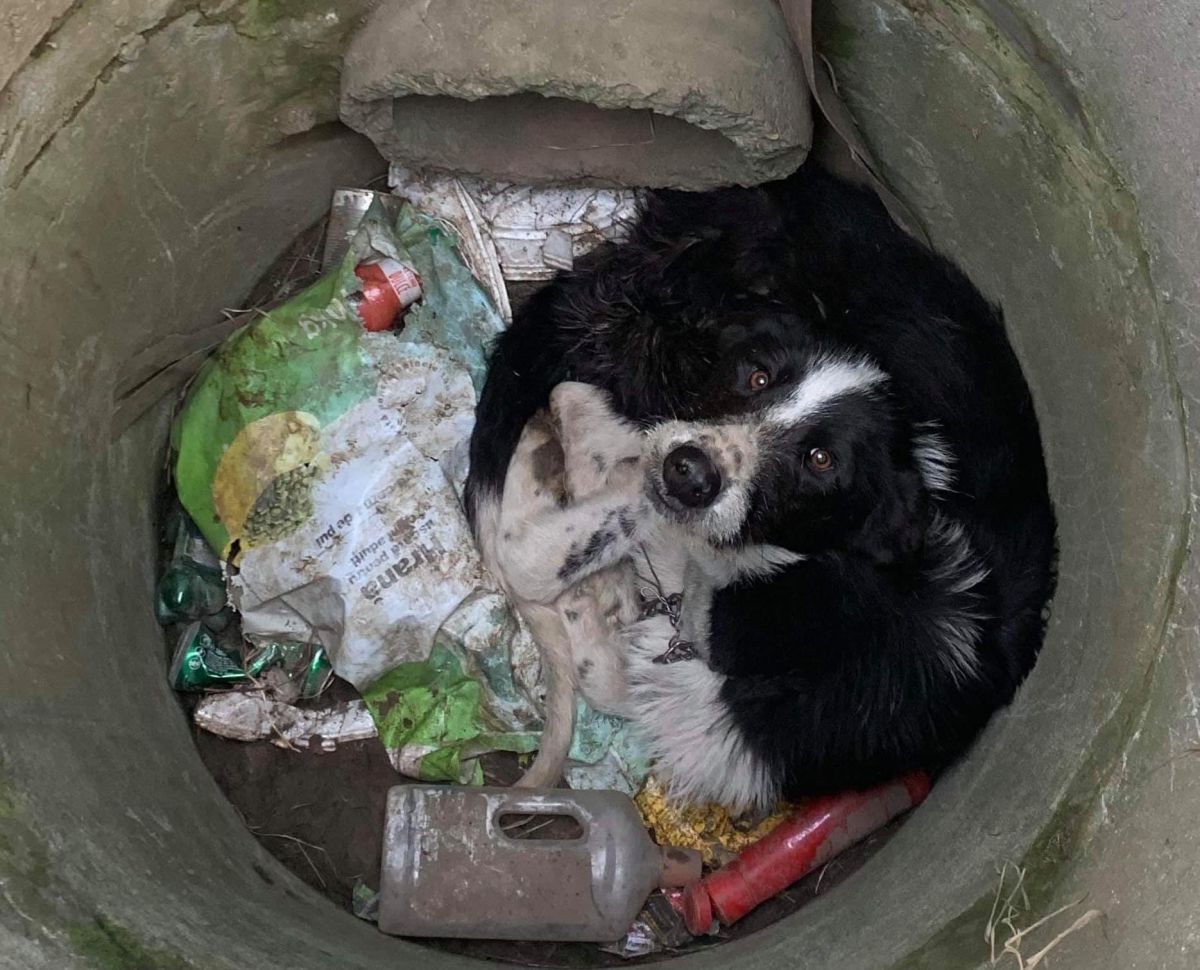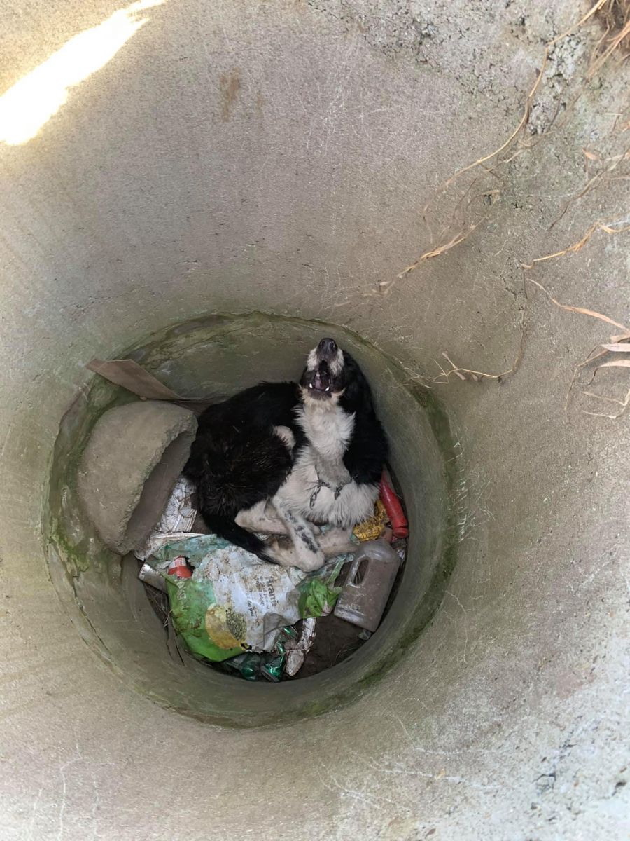 ”În canalul adânc de peste doi metri zăcea un câine, la prima vedere agresiv, cum ne vedea mârâia și lătra. Alături de el ambalajul unui sac de granule. Câinele cu lanț la gât. Am sunat la 112, au venit pompierii, iar in maxim cinci minute câinele era salvat, scos și pus în mașina noastră. Un ciobănesc tânăr, piele și os, care odată ce s-a văzut în brațele pompierilor a început să dea din coadă și s-a transformat într-un mielușel blând și cuminte”,