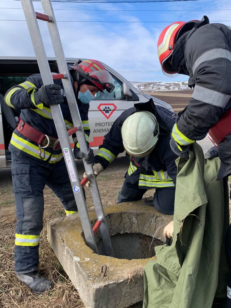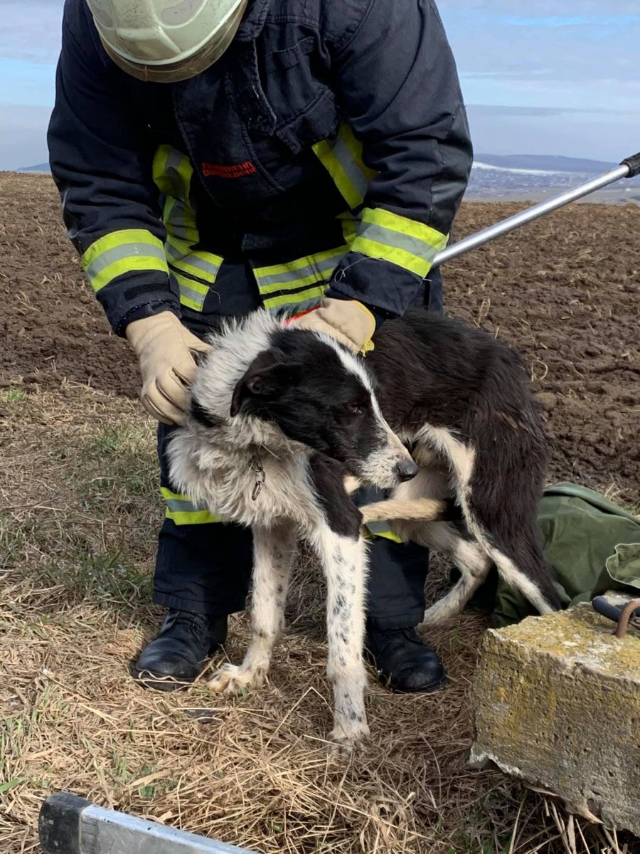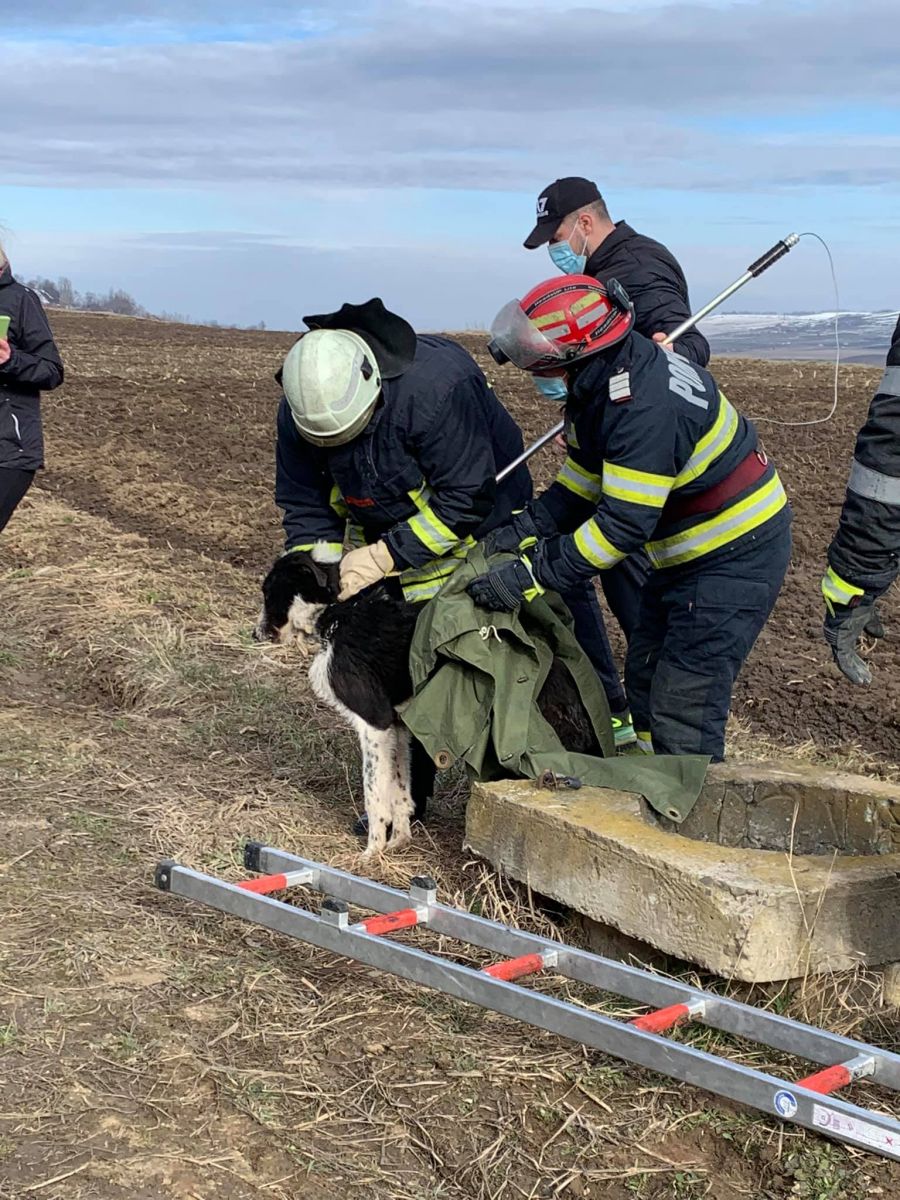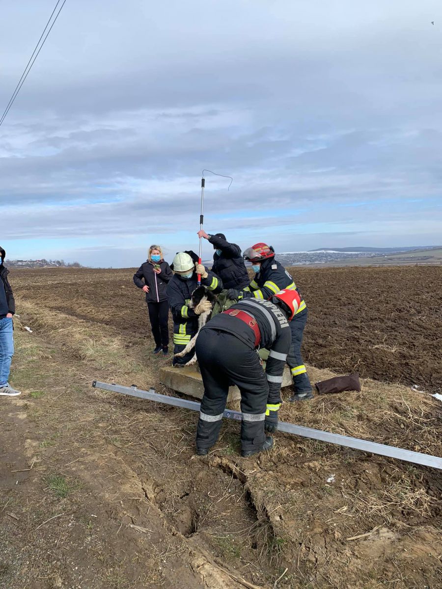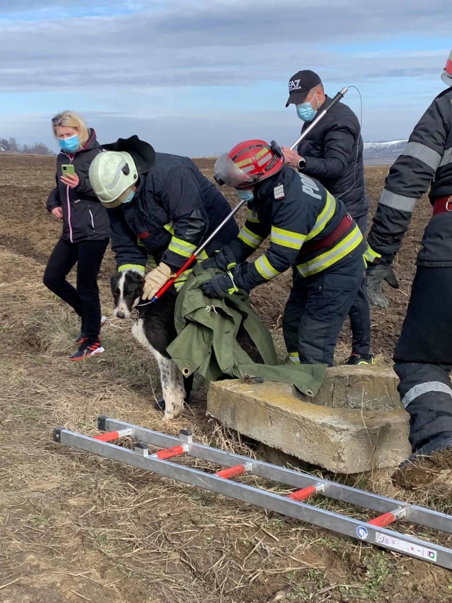 Sesizarea către iubitorii de animale a venit din partea unui copil. Era vorba despre un câine căzut într-un canal, pe câmp, în zona localității sucevene Mihoveni.