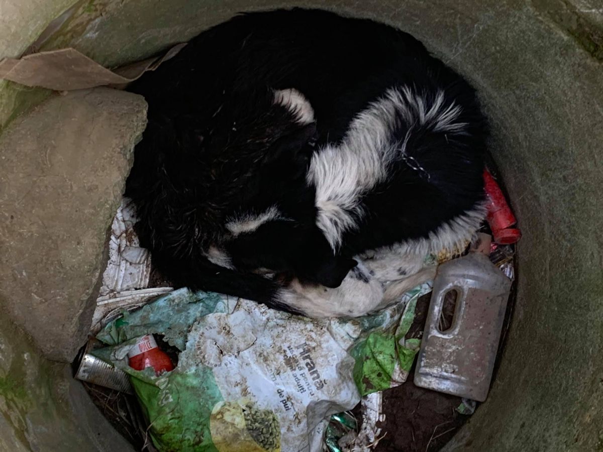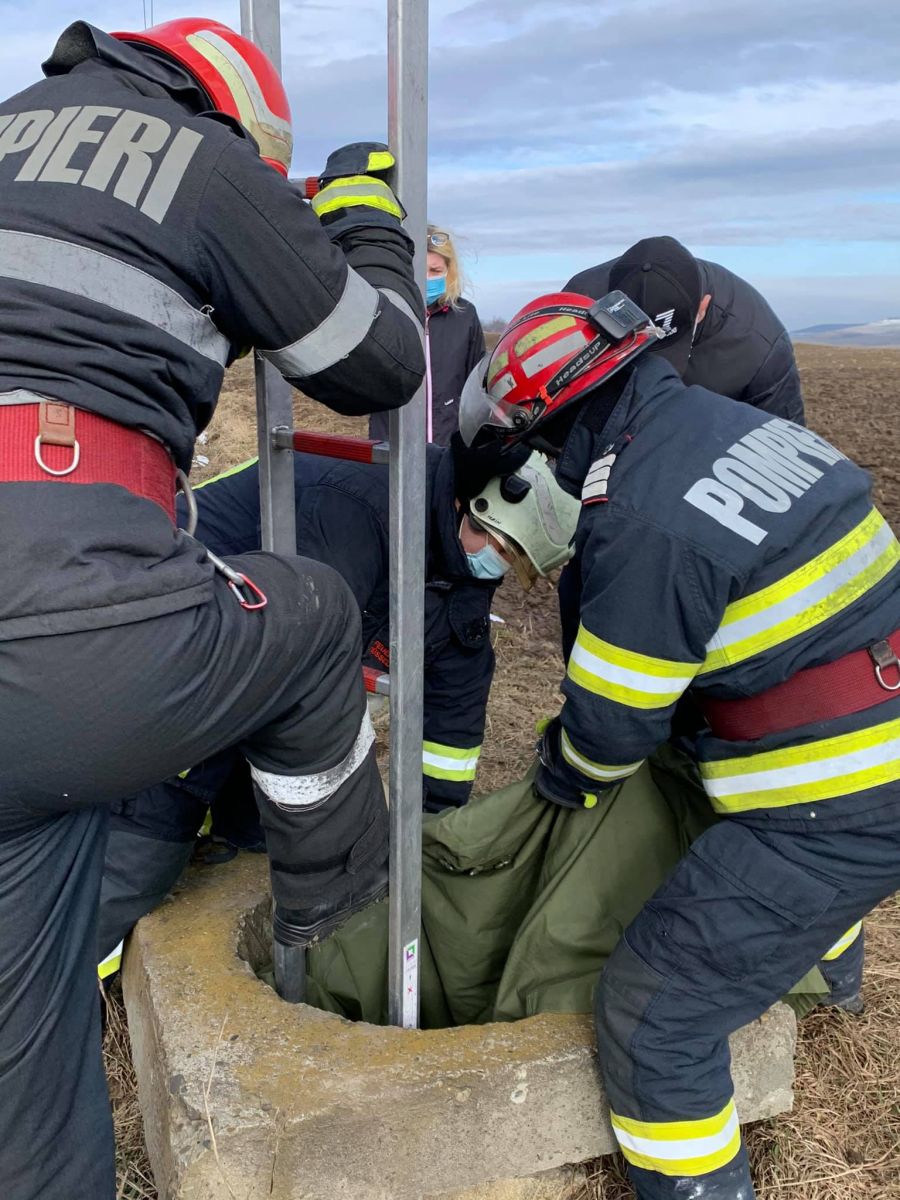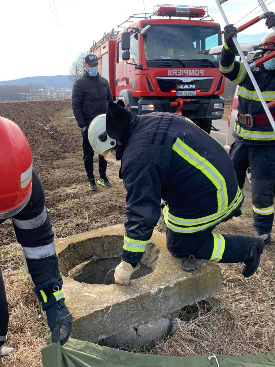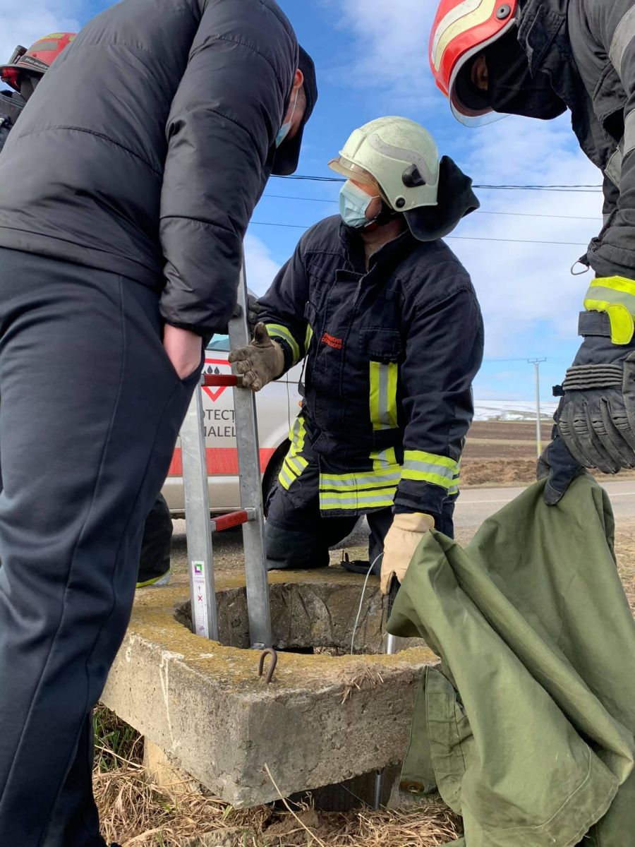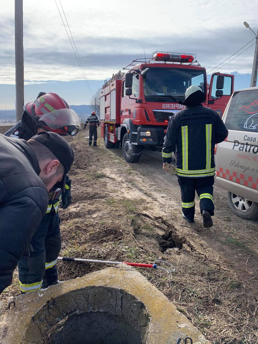 Sesizarea către iubitorii de animale a venit din partea unui copil. Era vorba despre un câine căzut într-un canal, pe câmp, în zona localității sucevene Mihoveni.