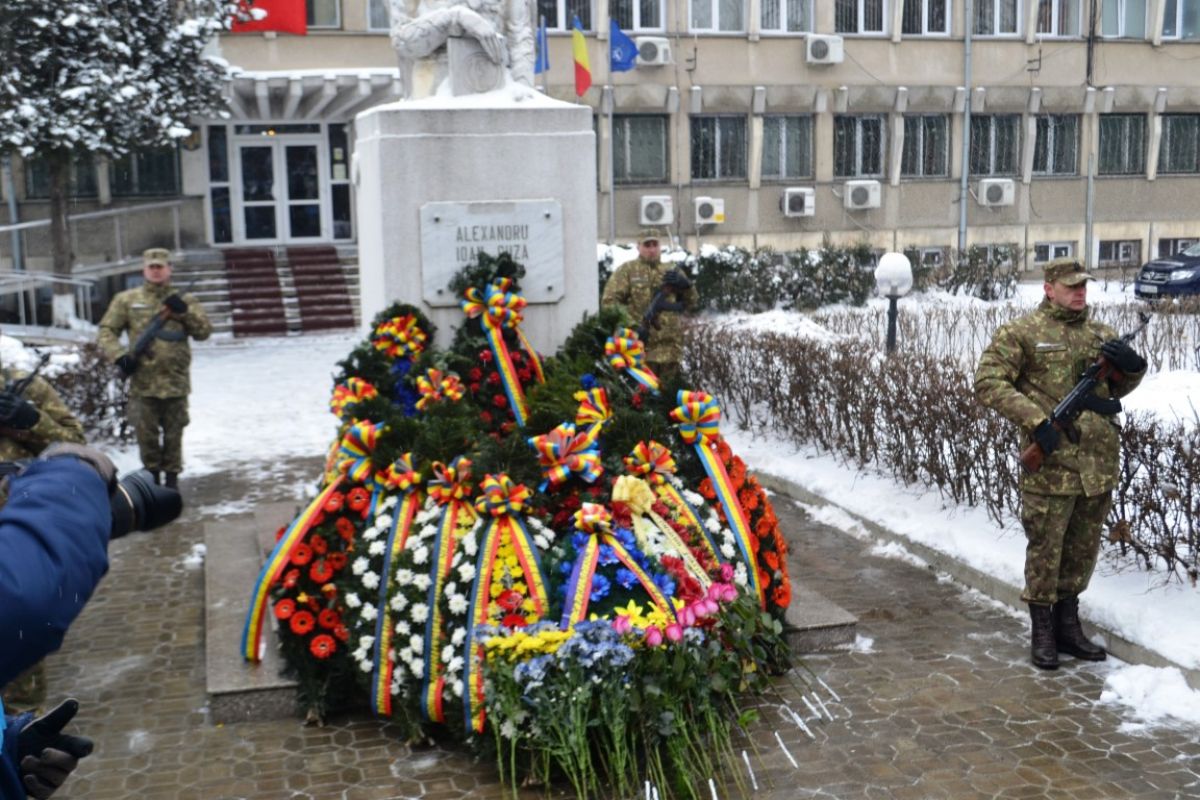 Au depus coroane de flori, ca de obicei, Prefectură, urmată de Consiliul Judeţean, Primăria Botoşani, Garnizoana Botoşani şi instituţiile militarizate.
