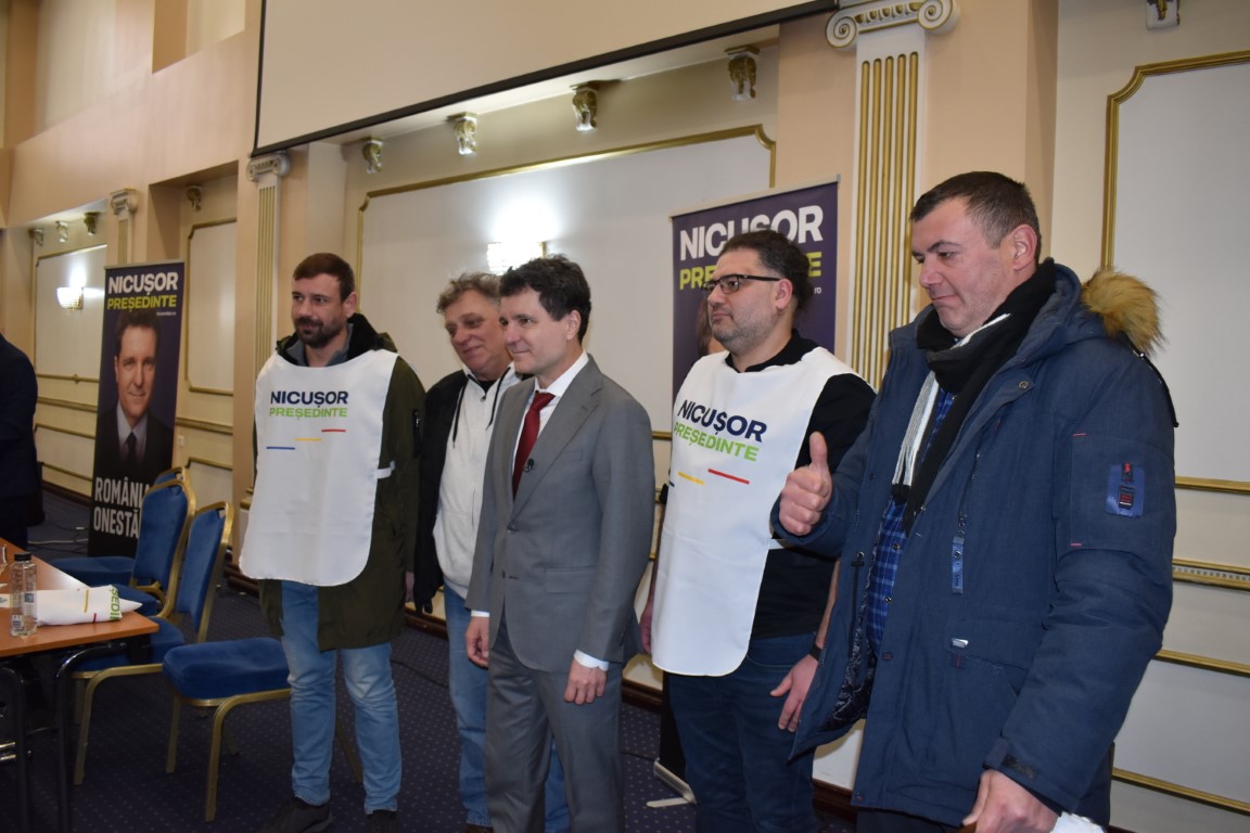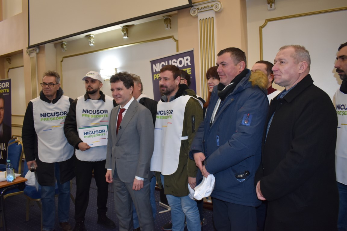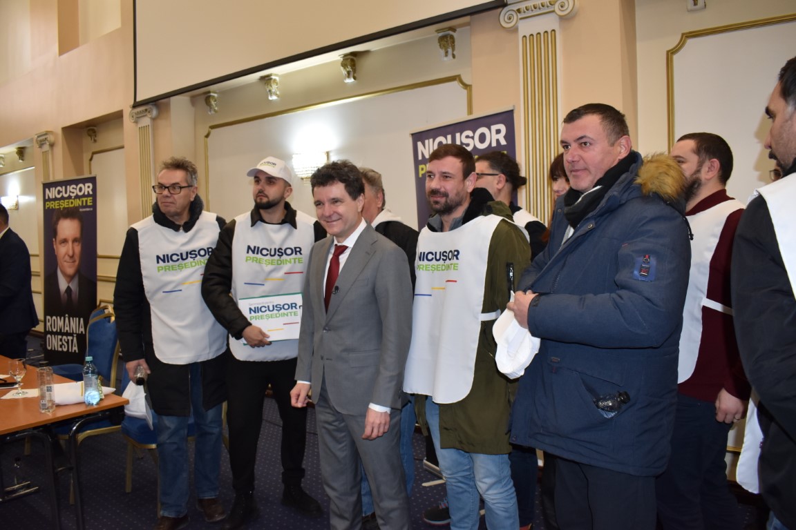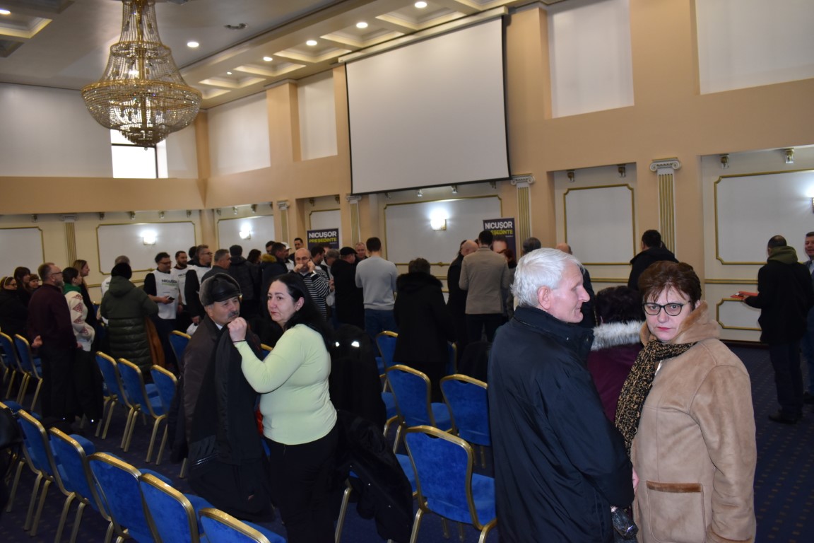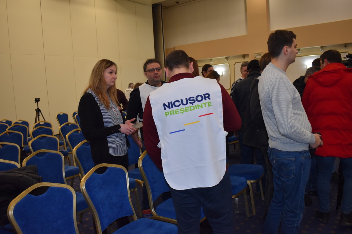 În sala Eminescu a complexului Rapsodia au fost câteva zeci de susținători ai candidatului independent la prezidențiale, Nicușor Dan.