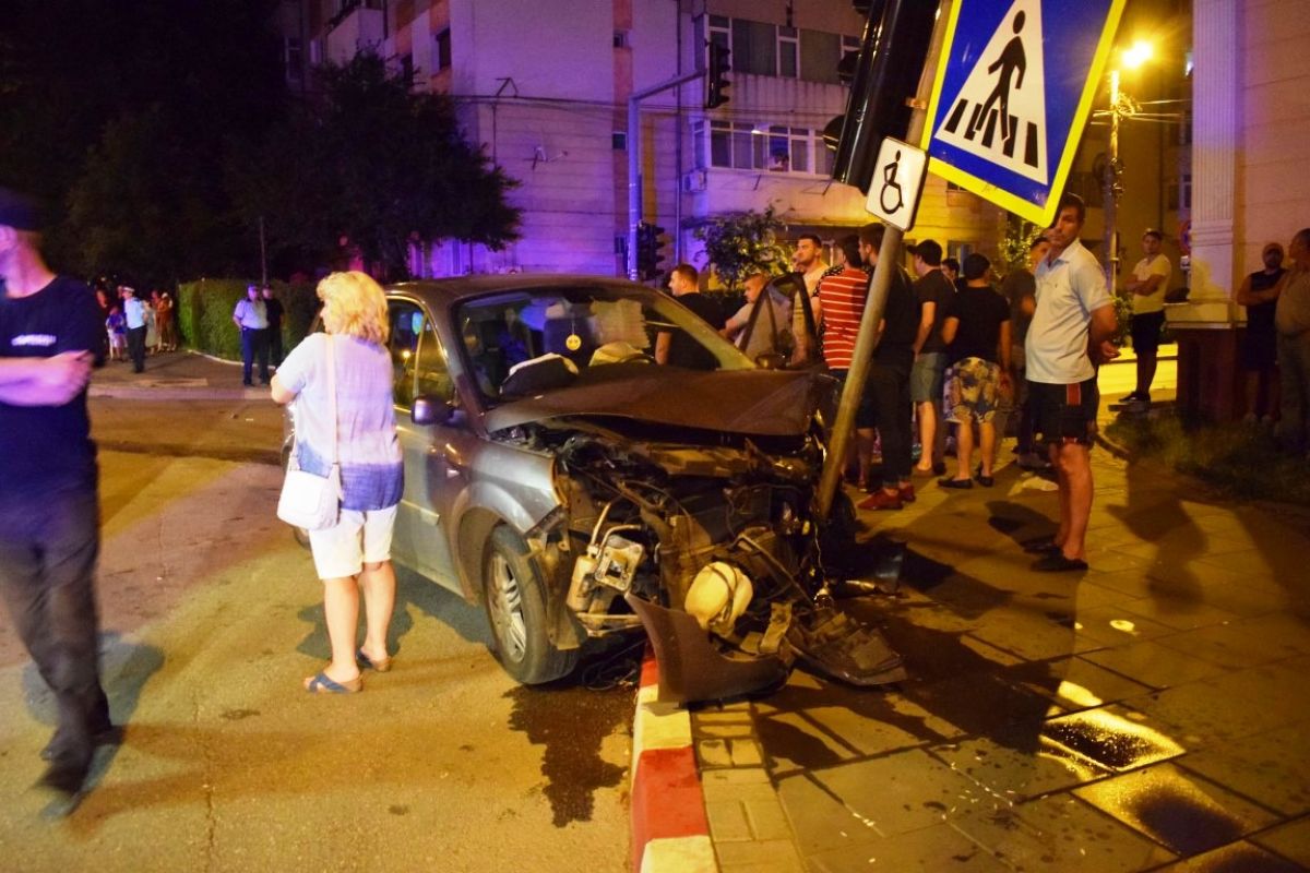 Impactul a fost atât de puternic încât mașina condusă de medicul din Botoșani a fost practic răsucită și aruncată în semaforul de pe partea opusă.