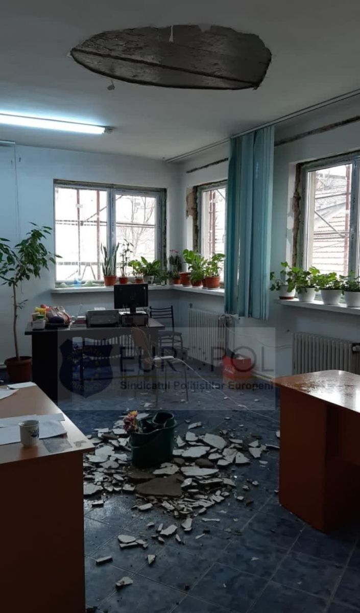 Ca acest sediu sunt multe altele la nivel național, pentru că subfinantarea MAI naște pericole, iar pericolul de a-ți cădea tavanul în cap  la serviciu e din ce în ce mai des întâlnit, mai arată sindicaliștii.