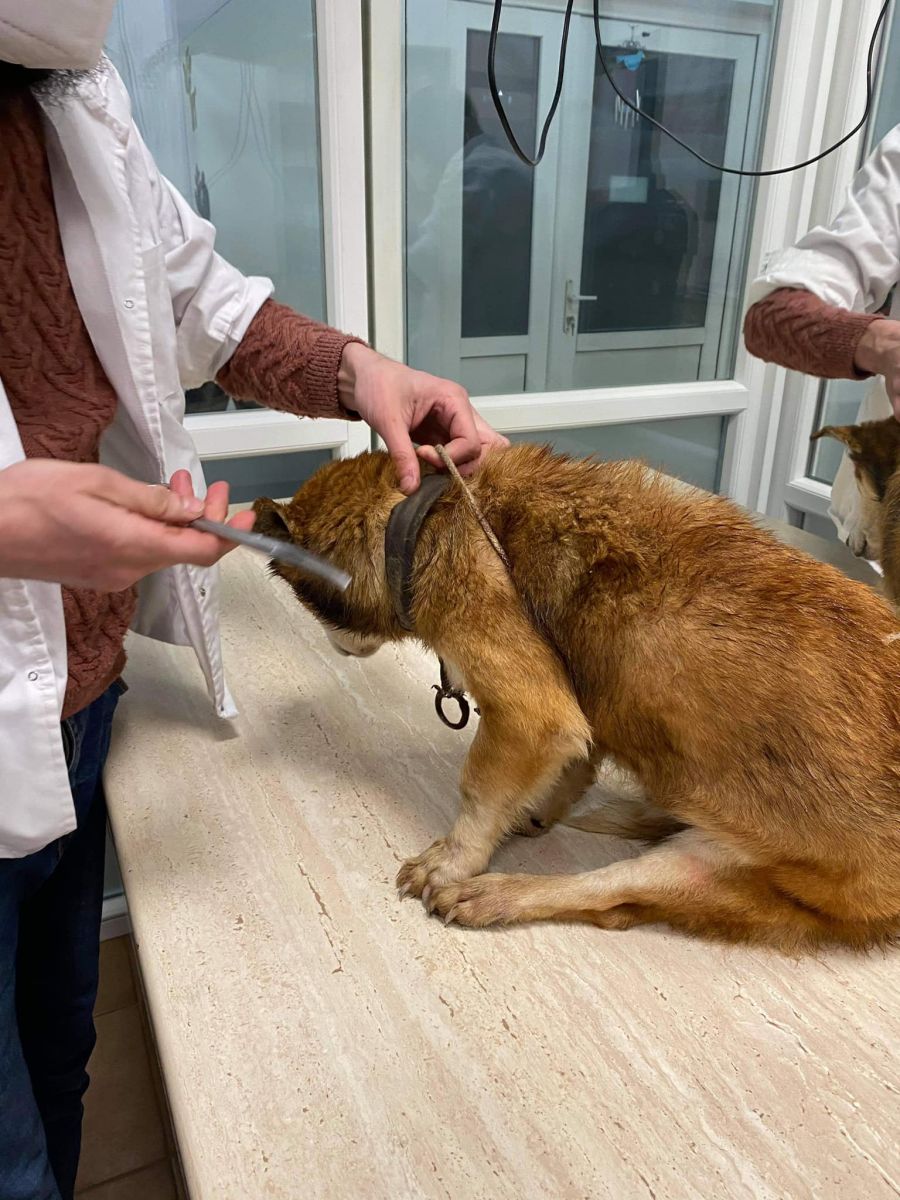 Groaza nu a fost atât cu privire la starea de sănătate a patrupedului, cât mai ales față de cruzimea celui care a adus câinele în această situație.