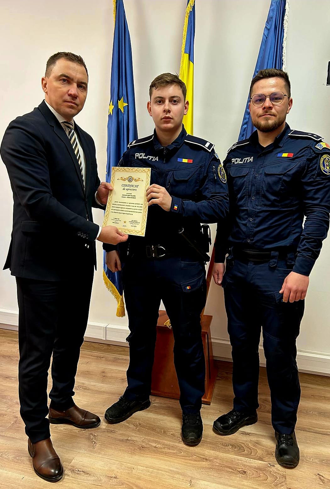 Distincția le-a fost înmânată de șeful Poliției Botoșani, comisarul șef Tudor Costîn.