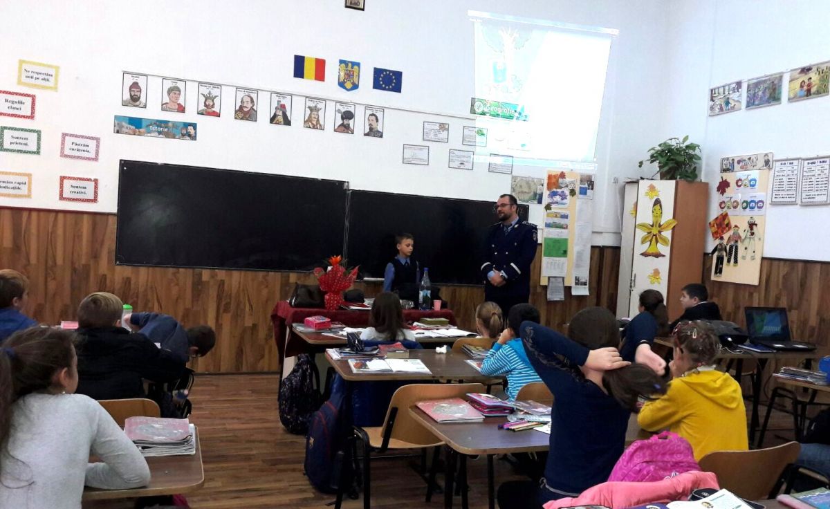 În cadrul activităților derulate în ultima săptămână, cei mai mici elevi ai claselor primare au primit informaţii privind siguranţa personală acasă, pe stradă şi în locurile de agrement. Întâlnirile poliţiştilor cu copiii se desfăşoară sub forma unor activităţi cu caracter interactiv, în cadrul cărora copiii primesc sfaturi cu privire la comportamentul pe care trebuie să îl adopte atunci când sunt singuri acasă, când se deplasează în locuri aglomerate, precum şi cu privire la măsurile pe care trebuie să le ia atunci când siguranţa le este pusă în primejdie .