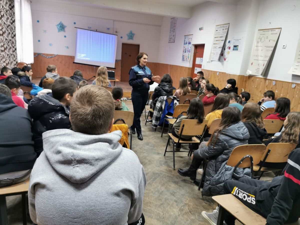 Polițiștii s-au întâlnit cu elevii din cadrul a șase unități de învățământ (Liceul de Artă ”Ștefan Luchian”, Liceul ”Dimitrie Negreanu” Botoșani, Liceul cu Program Sportiv Botoșani, Școala Gimnazială nr.1 Bălușeni, Școala Gimnazială nr.1 Leorda, Grădinița cu Program Prelungit ”Girotondo” Botoșani), cărora le-au fost expuse aspecte pe diferite linii de interes pentru siguranța minorilor, respectiv prevenirea oricărei forme de violență, inclusiv a celei de tip bullying, răspunderea contravențională și penală a minorilor, respectarea regulilor de circulație rutieră, și altele.
