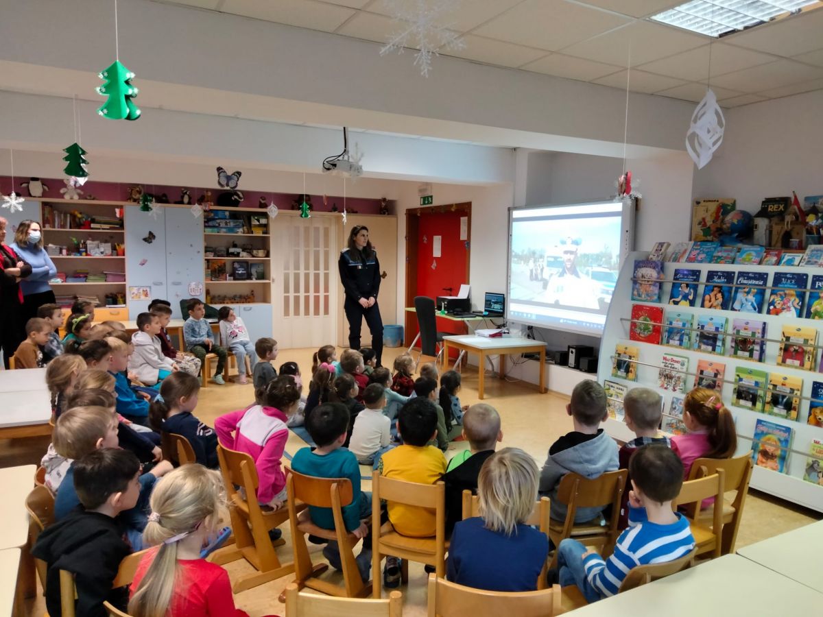 Cei mai mici dintre participanții la activități, respectiv preșcolarii Grădiniței ”Girotondo”, au primit sfaturi despre modul corect de a circula în calitate de pieton.
