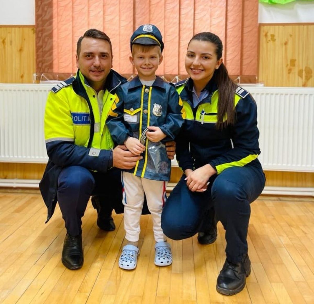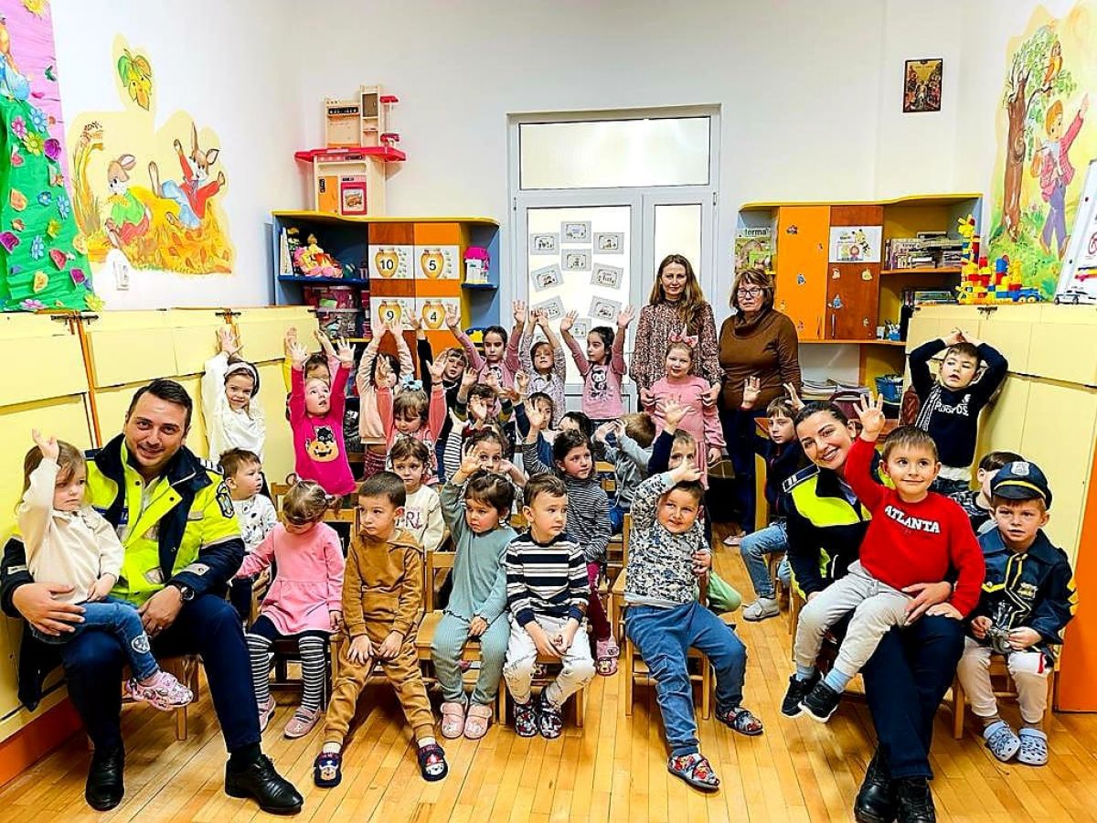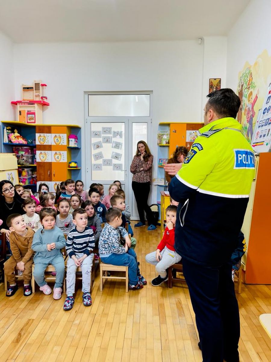 Polițiștii le-au vorbit celor mici despre importanța respectării regulilor de circulație și despre profesia de polițist.