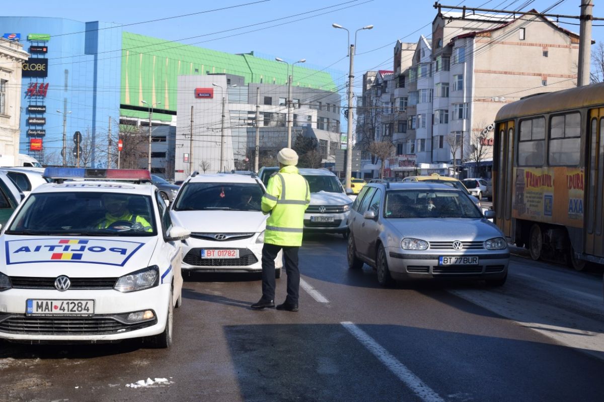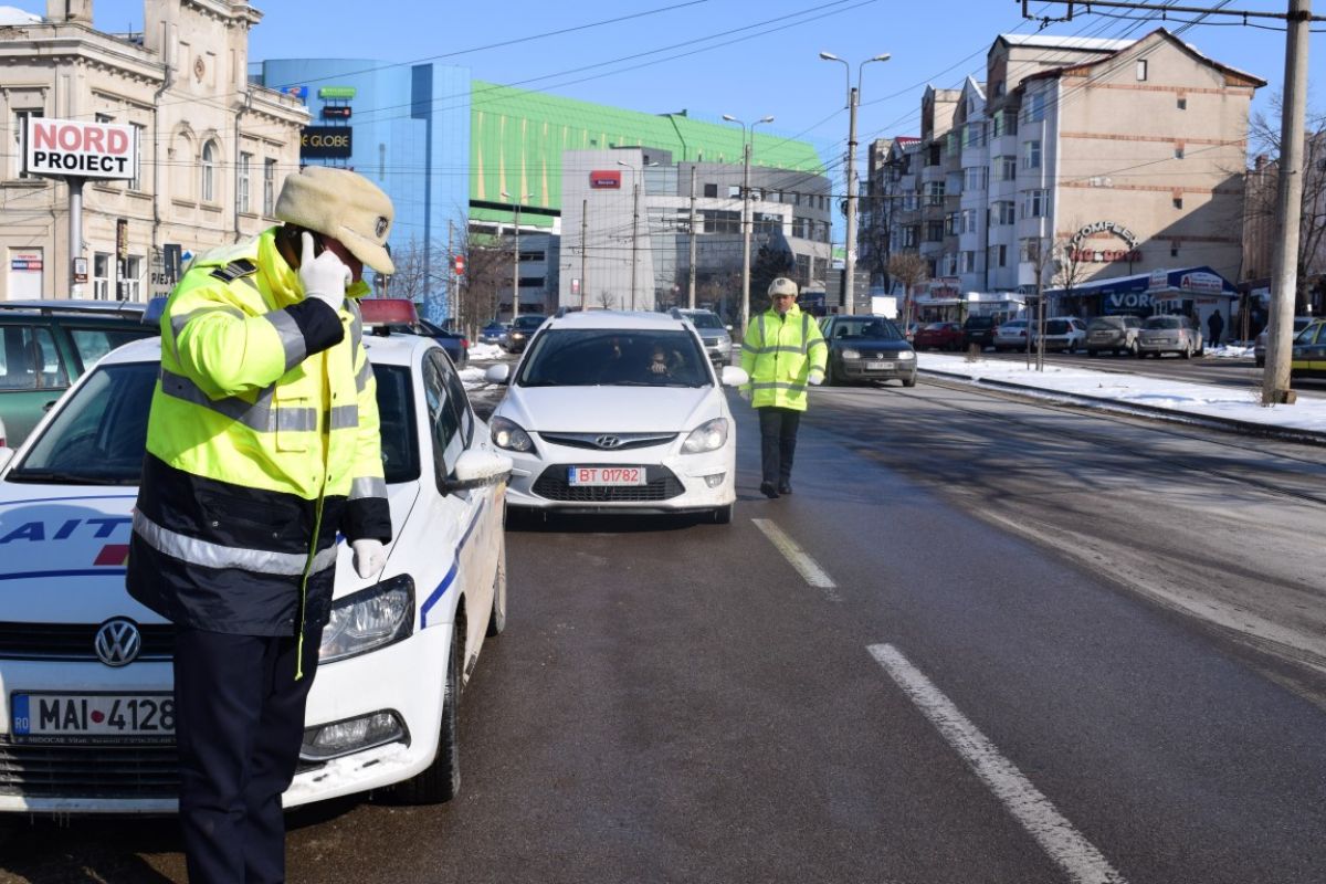Polițiștii de la Biroul Rutier de la nivelul județean au făcut un filtru mai inedit în zona Dedeman, la ieșirea din oraș spre Suceava, în timp ce, cei municipali s-au poziționat în fața Bibliotecii Județene Mihai Eminescu.