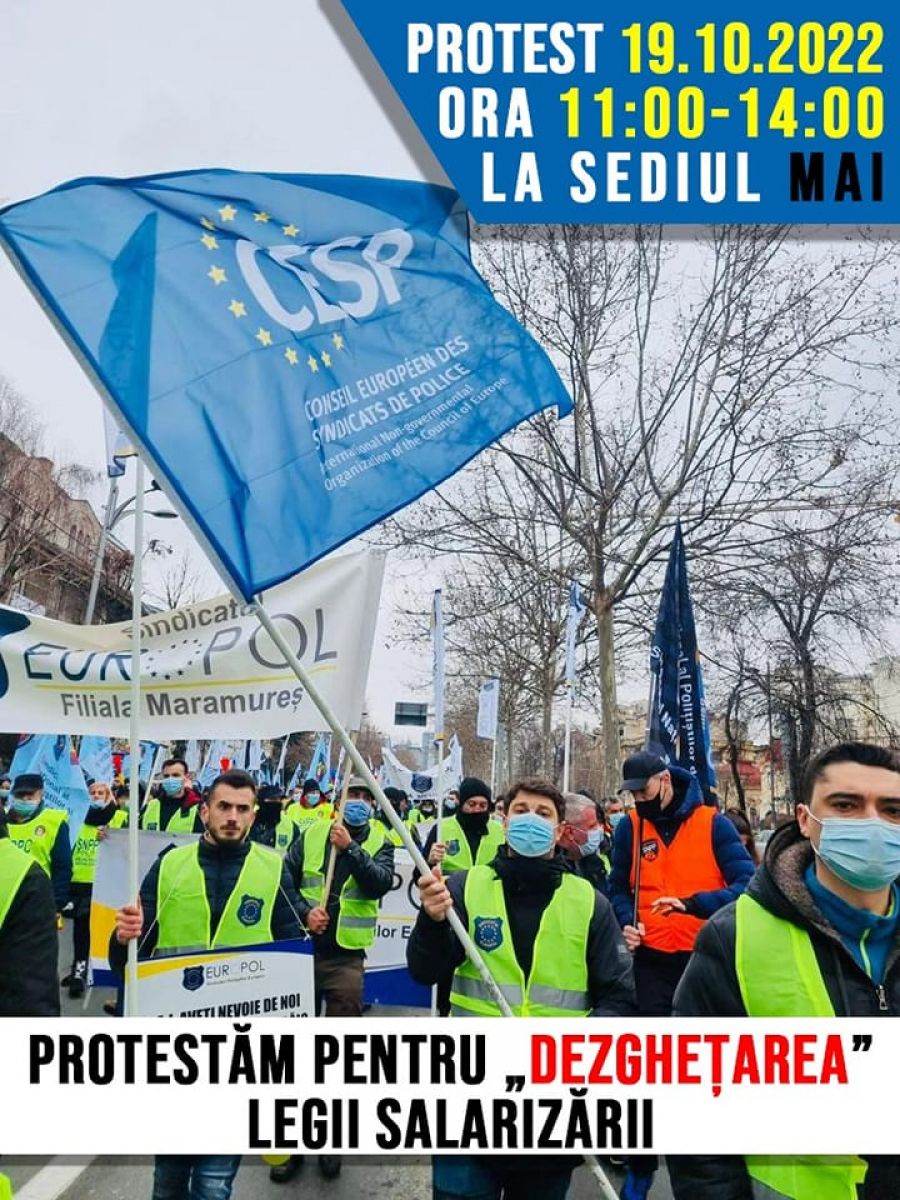 Potrivit sindicaliștilor de la Europol, polițiștii își vor manifesta nemulțumirea față de neaplicarea corectă a legii salarizării și a condițiilor de muncă, ”fapt pentru care trebuie să dăm dovadă de unitate și solidaritate, în condițiile în care în această perioadă se creionează bugetul pentru anul viitor, iar polițiștii vor fi din nou sacrificații de serviciu”.