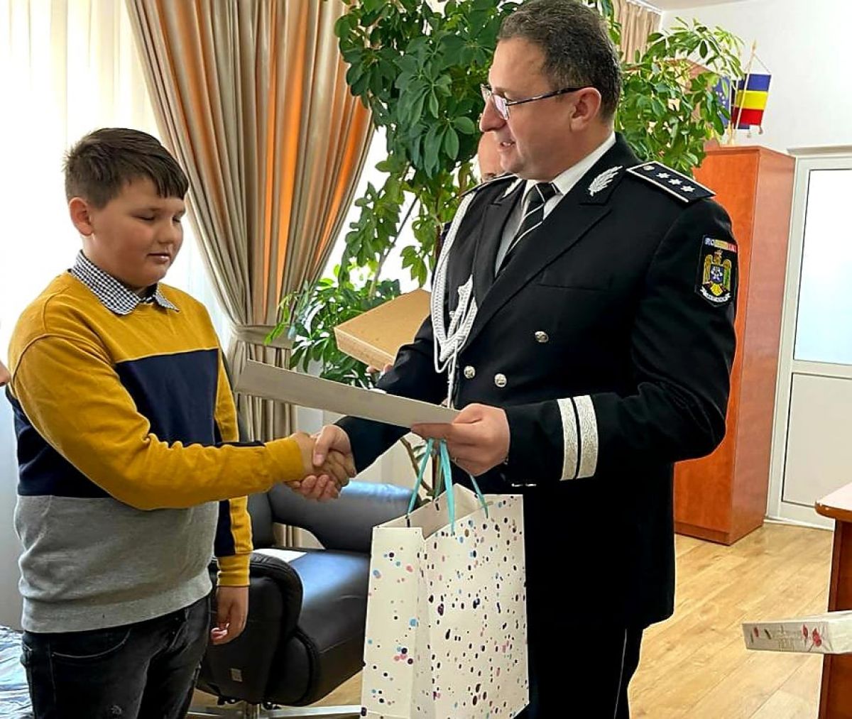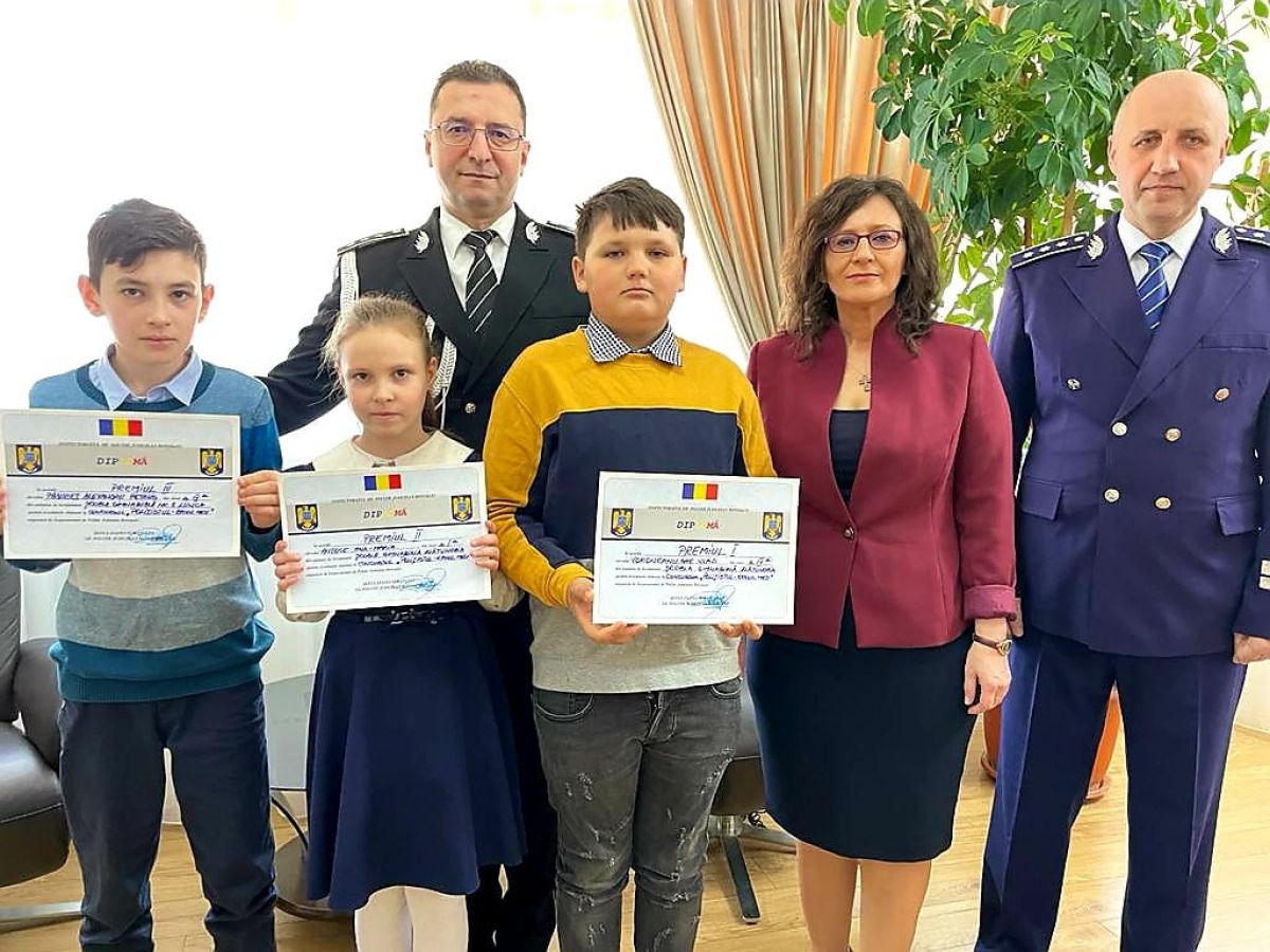 Copiii, împreună cu părinții și dascălul lor, au fost invitați la sediul Inspectoratului de Poliție Județean Botoșani, unde le-au fost acordate diplome și premii, constând într-un laptop, o tabletă electronică, rechizite și dulciuri.