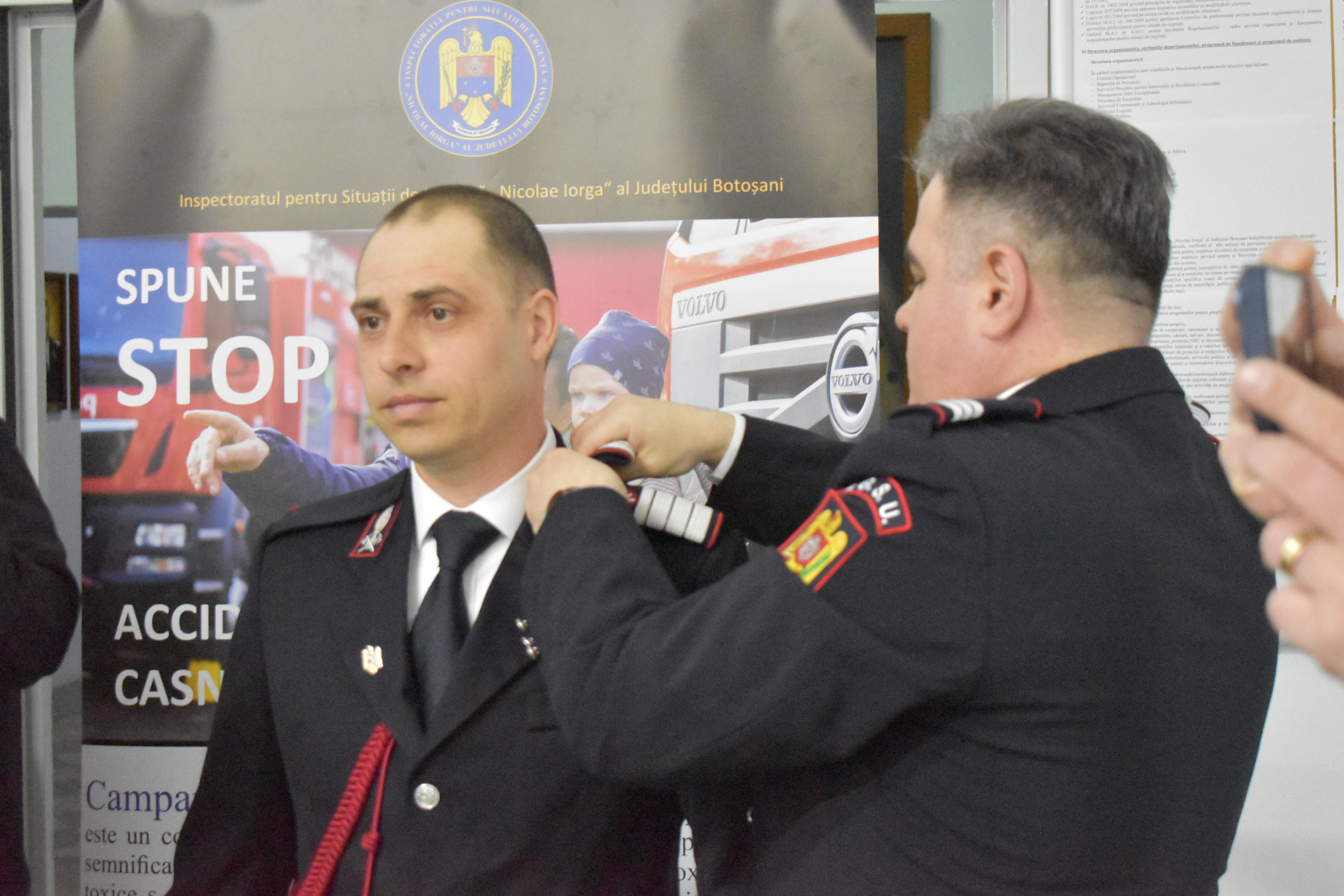 Inspectorul șef al ISU Botoșani, colonel Dan – Decebal Muraru a precizat că înaintarea în gradul următor este un moment cu o încărcătură deosebită pentru orice militar căruia i se vede recunoscută şi apreciată atât munca, implicarea în acţiunile de protecţie a vieţii, mediului şi valorilor materiale, cât și respectarea deontologiei profesionale.