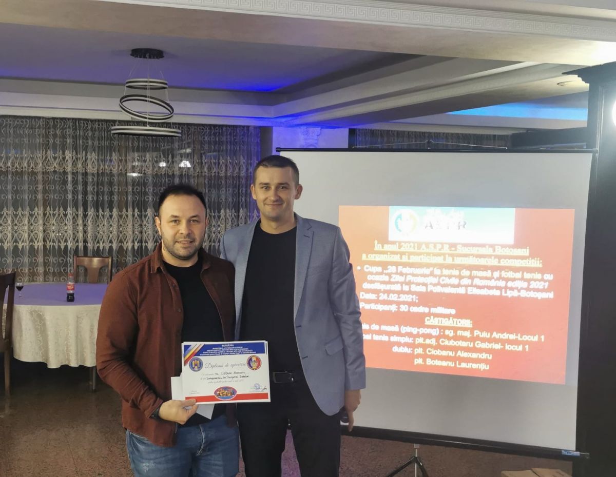 Iar cei mai buni dintre ei au fost premiați miercuri, de către Asociația Sportivă a Pompierilor din România - sucursala Botoșani, în cadrul "Galei celor mai buni sportivi".