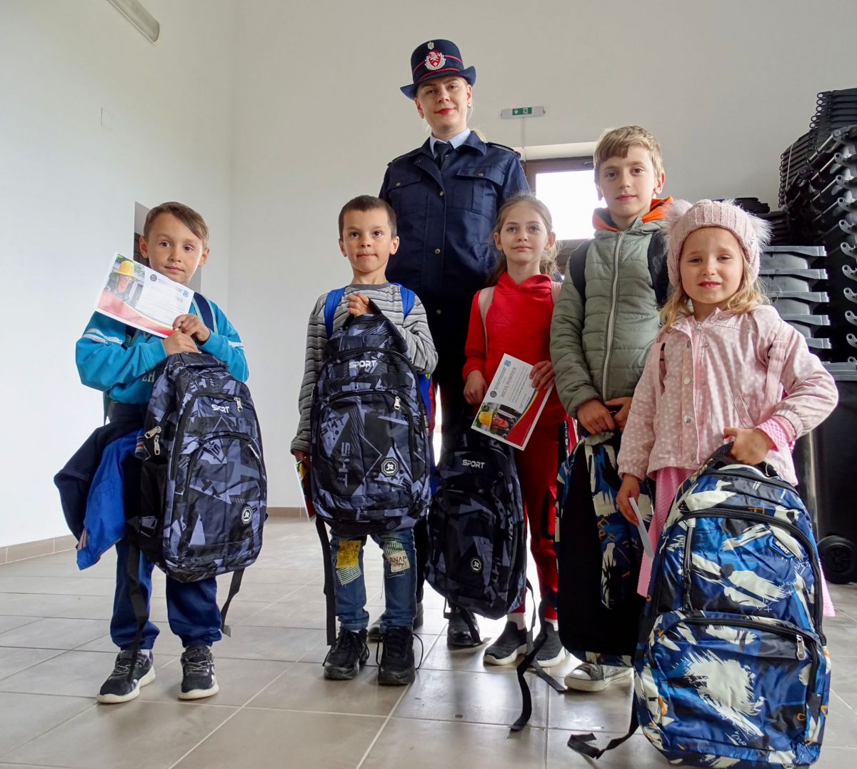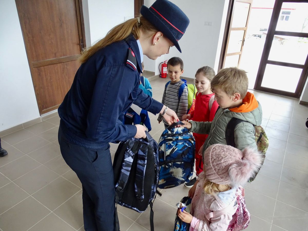 Pompierii au împărțit astăzi ghiozdane, rechizite și dulciuri într-un proiect unic la nivel național – GALERIE FOTO