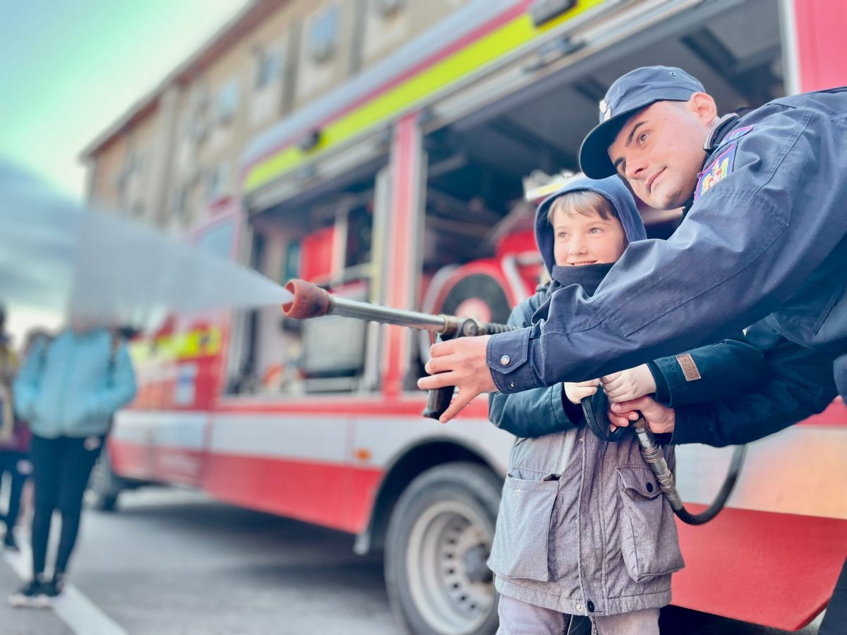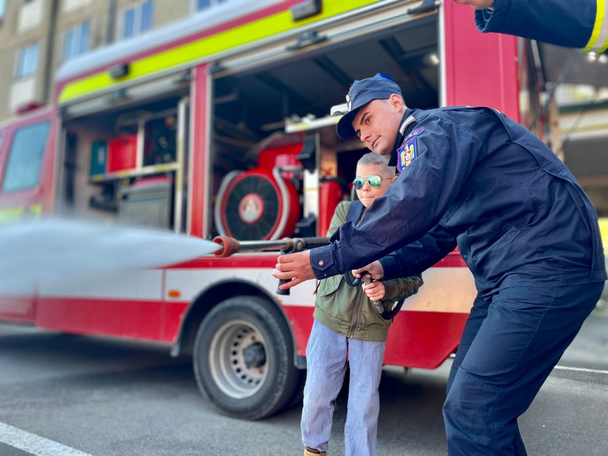 Au avut ocazia să vadă îndeaproape autospecialele folosite în misiunile operative și au aflat informații utile cu privire la modul în care trebuie să se comporte pentru a preveni situațiile de urgență. Autospeciala pentru intervenție și salvare de la înălțime a fost unul dintre punctele de atracție, copiii demonstrând că nu au frică de înălțime. Aceștia au îmbrăcat haina de pompier, au urcat în autospecialele de intervenţie, iar cei mai îndrăzneți au testat presiunea furtunurilor ca și când ar fi stins un incendiu.