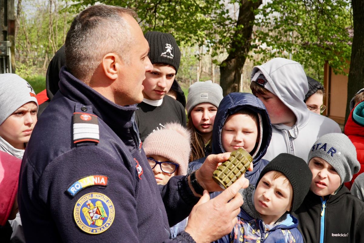 Aceștia le-au vorbit, pe înțelesul lor, ce trebuie să facă să nu ajungă în situații limită, dar și cum să se comporte dacă sunt implicați sau martori ai unor evenimente nedorite fie că e vorba de incendii, inundații, cutremur sau descoperirea munițiilor rămase neexplodate.