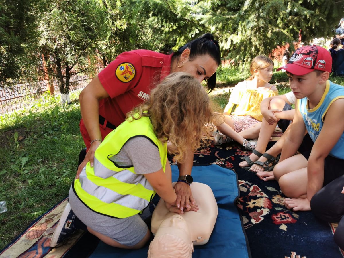 Mirabela Ciaia și Simona Cărbunaru, voluntari în cadrul programului național "Salvator din Pasiune", i-au învățat cum să execute corect manevrele de acordare a primului ajutor.
