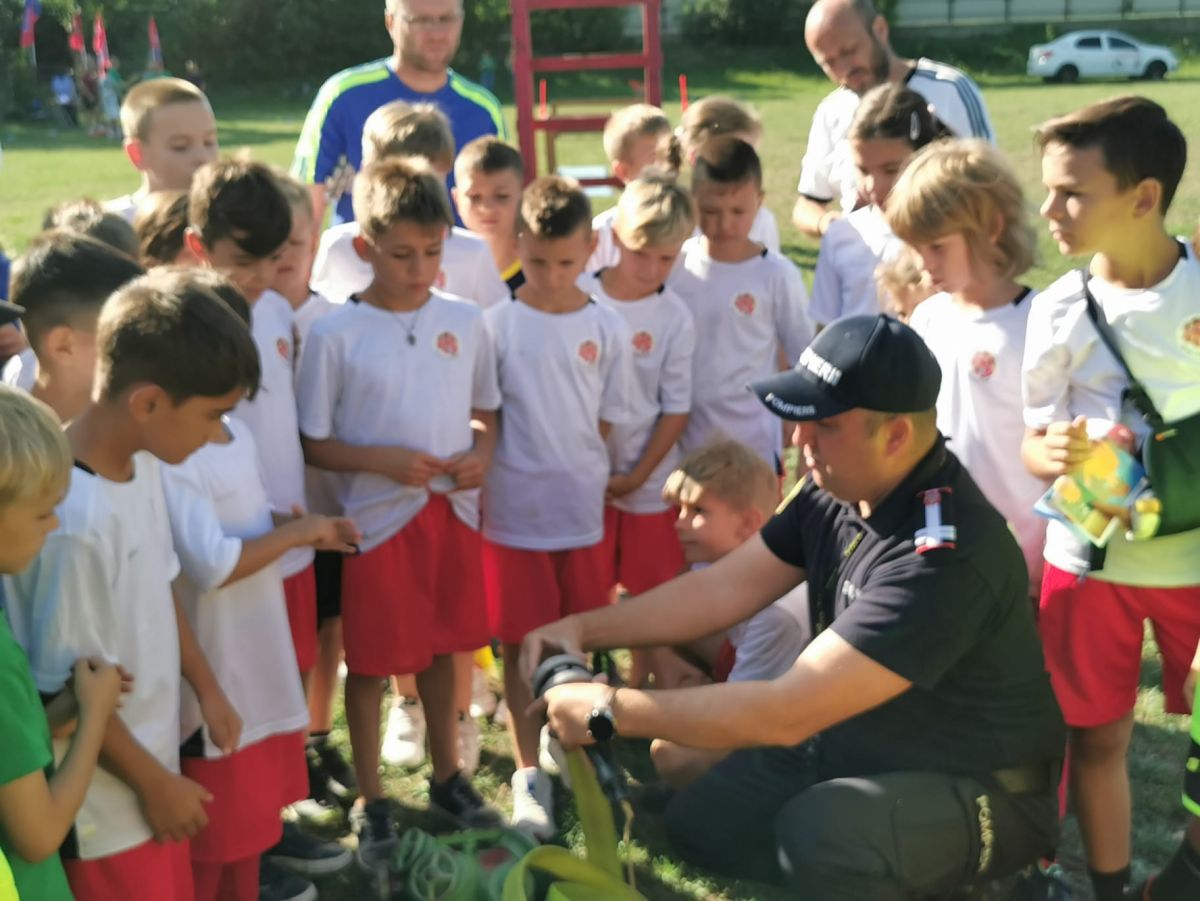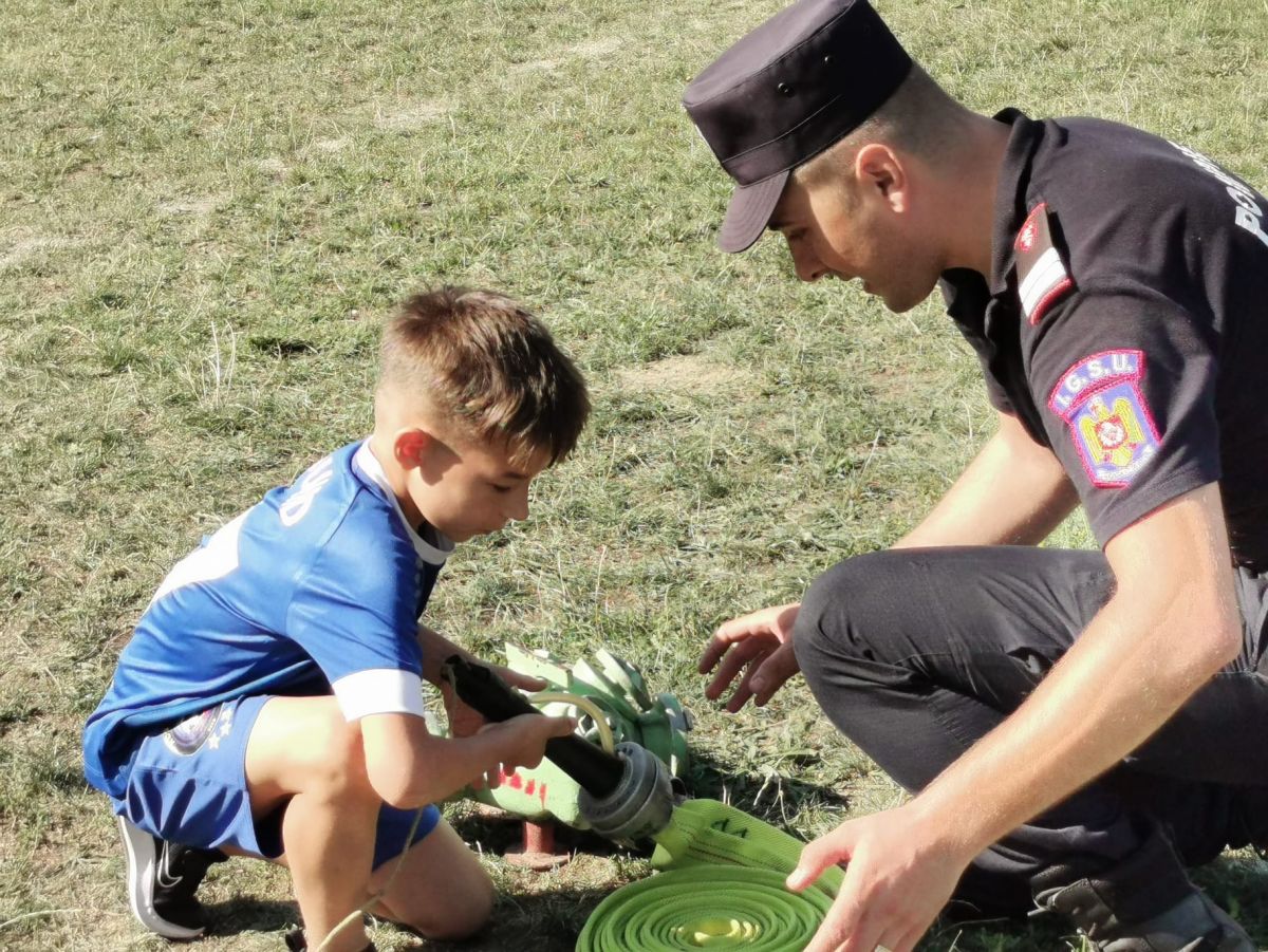 Chiar dacă s-au adunat în tabără pentru a disputa meciuri de fotbal, copiii au demonstrat că au și abilități de viitori pompieri.