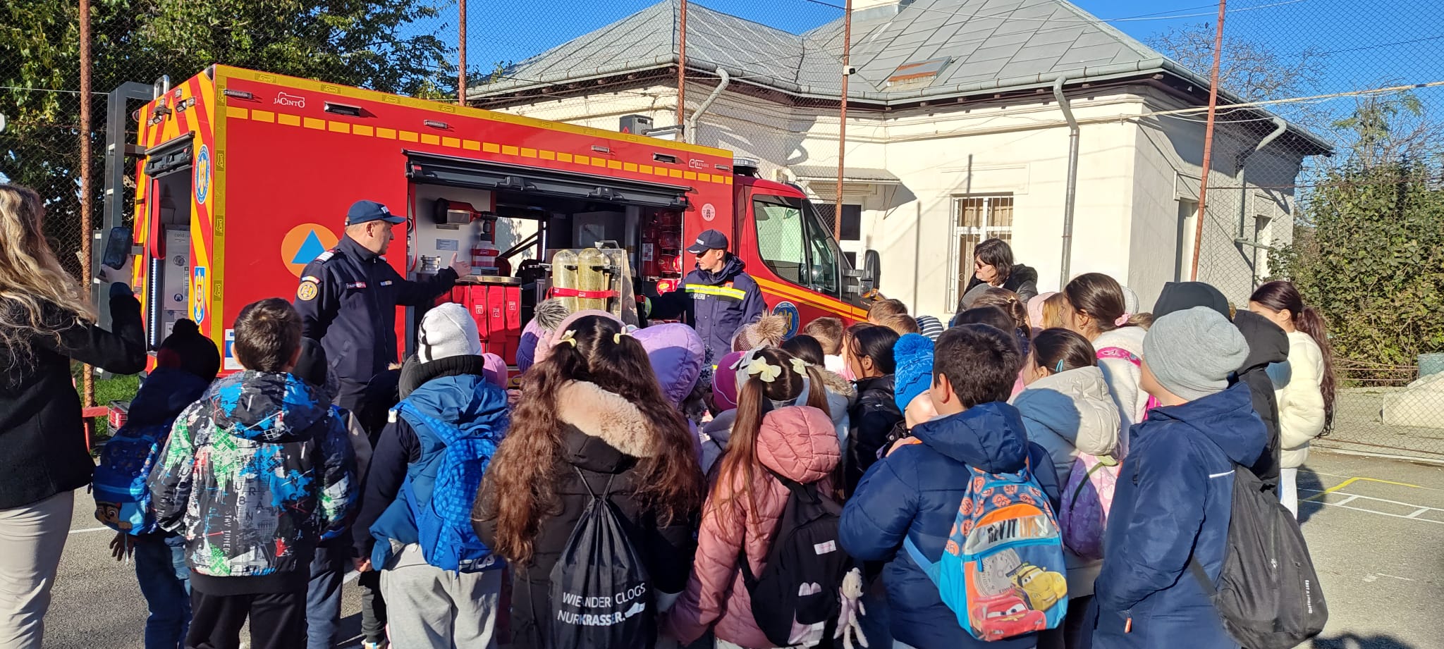 Pompierii din cadrul Inspecției de Prevenire le-au explicat copiilor principalele cauze care pot duce la izbucnirea incendiilor, modul corect de utilizare a surselor de foc, dar și cum trebuie să acționeze în momentul în care observă un început de incendiu. De asemenea, elevii au aflat informații utile despre apelarea corectă a numărului unic de urgență 112 și au primit sfaturi despre cum trebuie să procedeze în cazul producerii unui incendiu în incinta școlii: