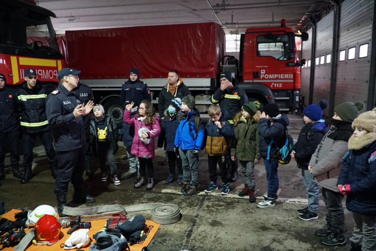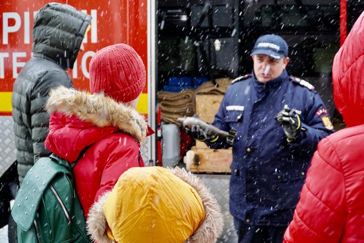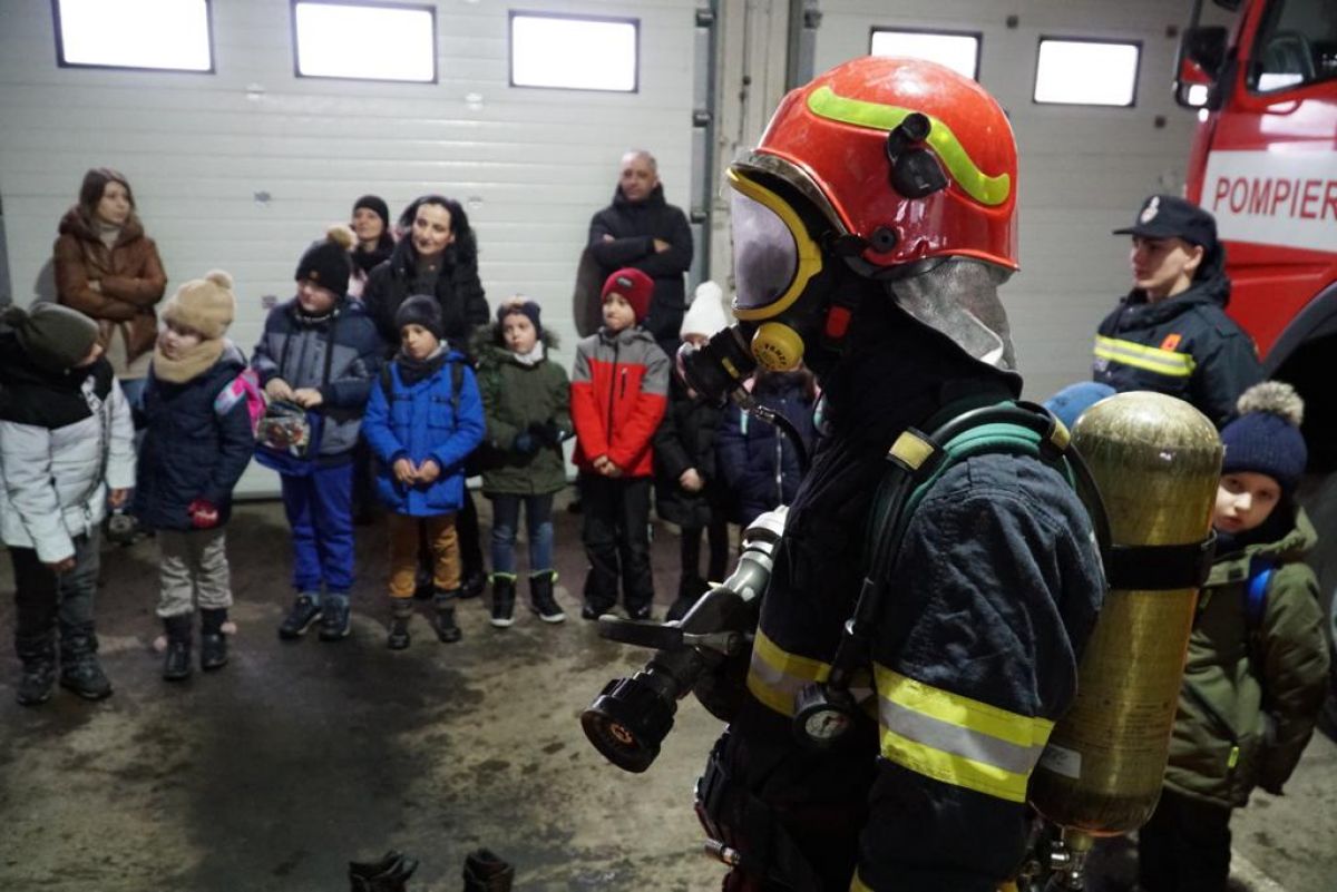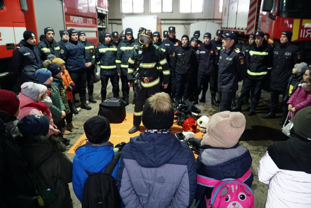 Vizibil emoţionaţi, copiii au îmbrăcat haina de pompier și au urcat în autospecialele de intervenție, iar gazdele le-au explicat cum se folosește fiecare accesoriu, în parte.