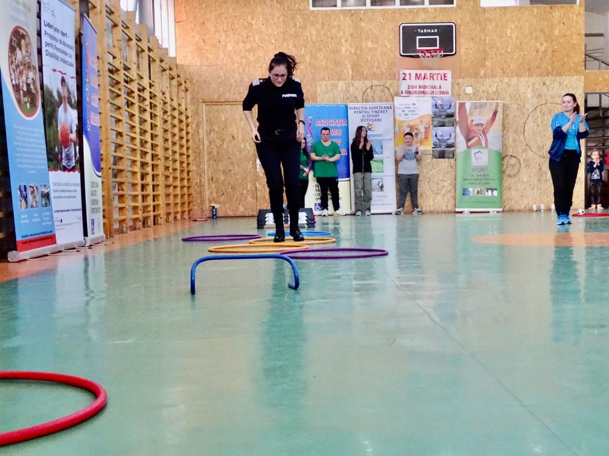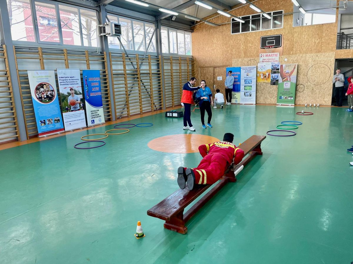 Fiecare echipă care a participat la concursul „Dezvoltare prin sport - Ștafeta Prieteniei” a avut în componenţă un copil cu sindrom Down, un elev și un pompier. Concurenţii și-au demonstrat abilităţile sportive la atletism – ștafetă. Pompierii au descoperit nişte copii minunaţi, sinceri, iubitori, zâmbitori, pentru care locul I nu există, ci doar plăcerea de a practica un sport.