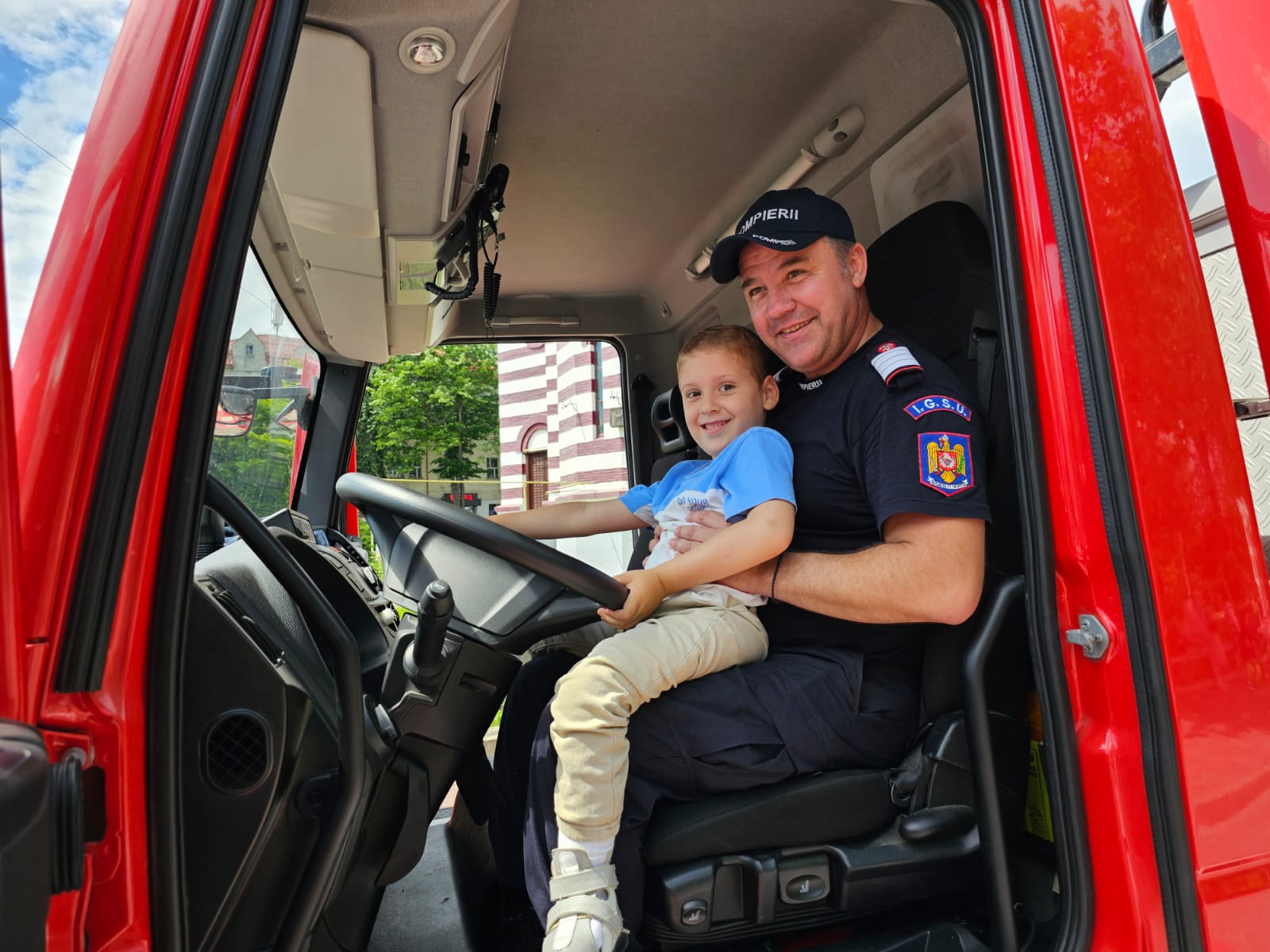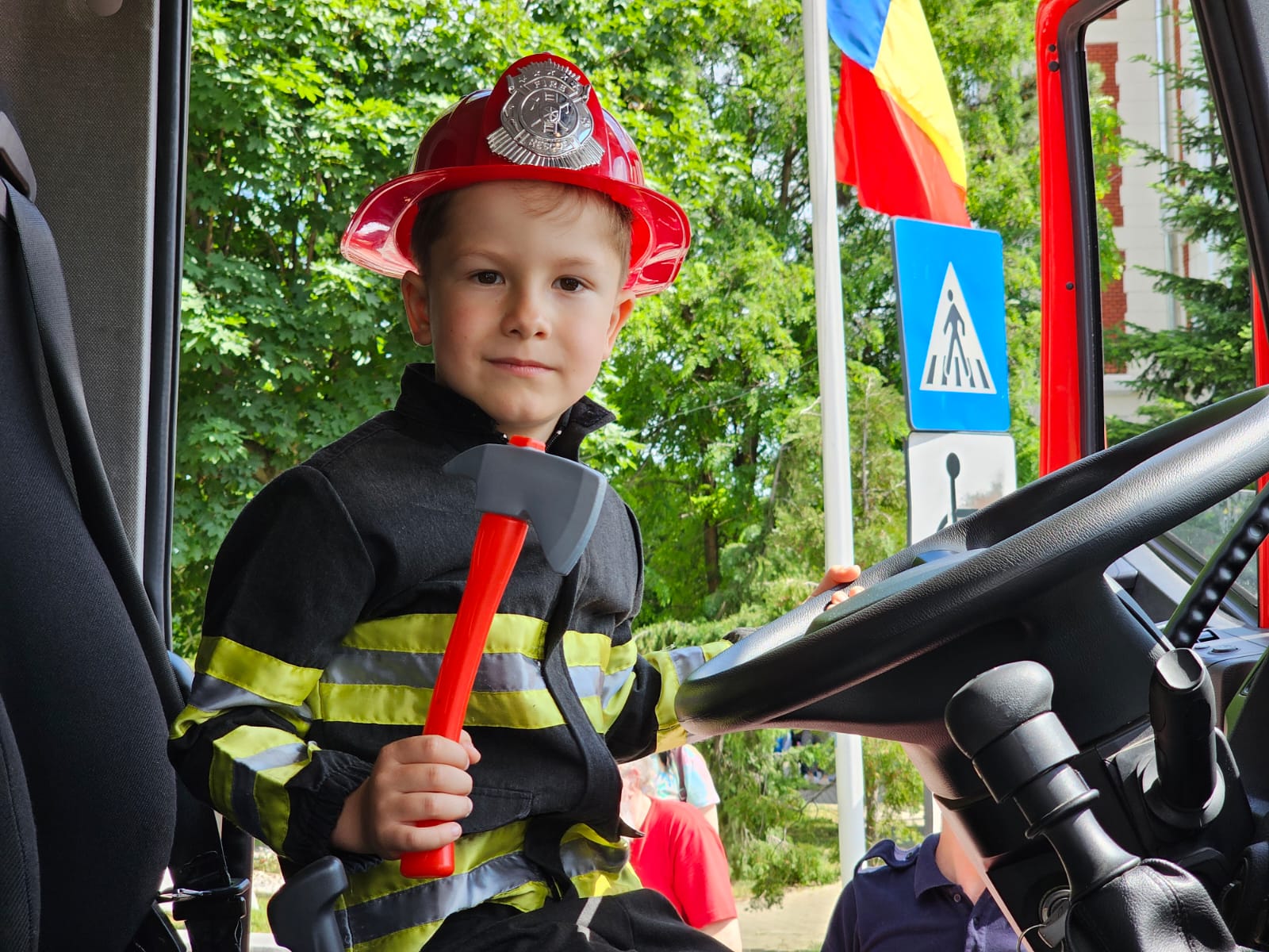 Vizibil emoționați, copiii au îmbrăcat haina de pompier, au probat kit-ul de salvare din fântâni, au urcat în autospecialele de intervenție și s-au plimbat cu șenilata.