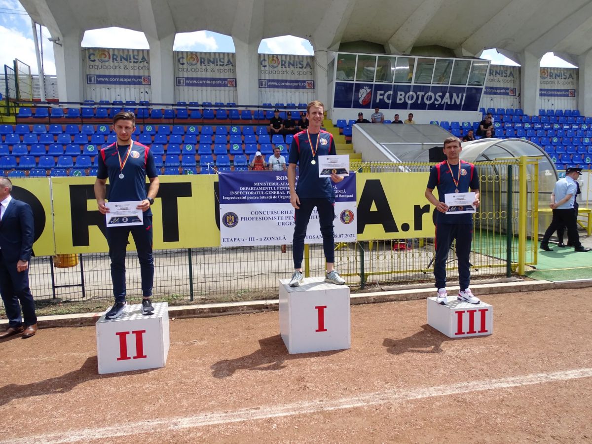 Primele două probe s-au desfășurat pe baza de pregătire a Detașamentului de Pompieri Dorohoi, iar a treia pe Stadionul Municipal Botoșani, pe data de 07 iulie a.c.. Astăzi dimineață, pe Stadionul „Mecanex” din municipiul Botoșani, a avut loc ultima probă a concursului.