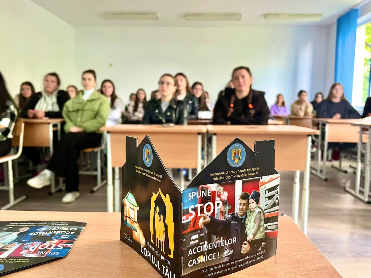 La finalul întâlnirii, elevele au primit câte o broșură din cadrul campaniei „Un cămin sigur pentru copilul tău”, care conține sfaturi pentru înlăturarea pericolelor din mediul casnic și care a fost editată cu sprijinul Consiliului Județean (CJ) Botoșani și Autorității Teritoriale de Ordine Publică (ATOP) Botoșani.